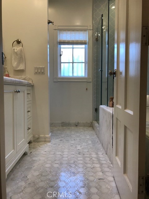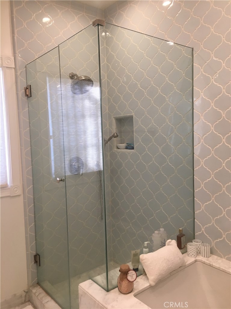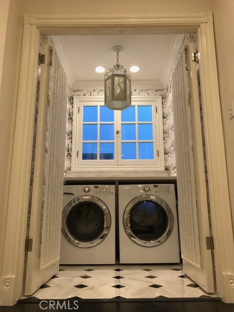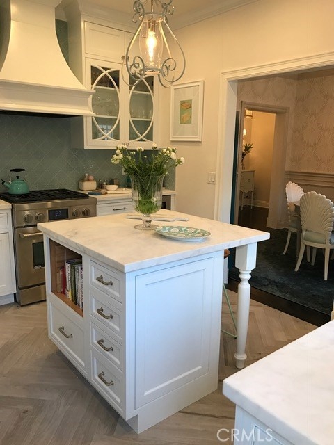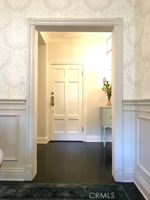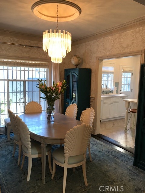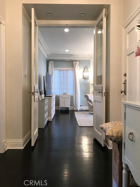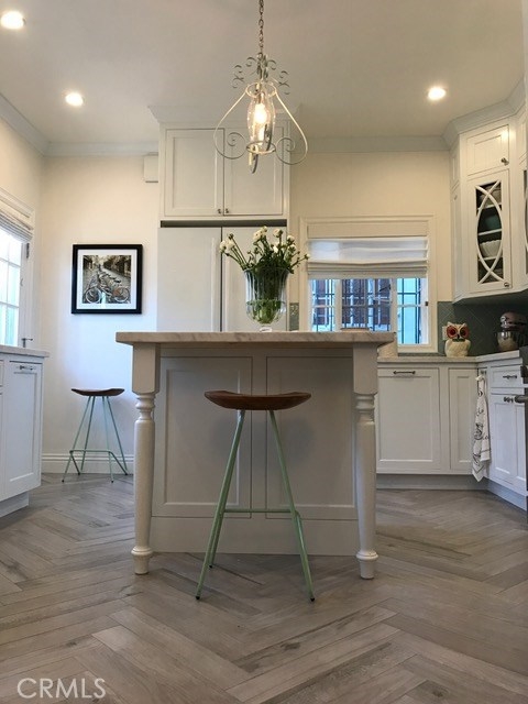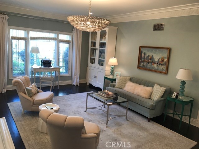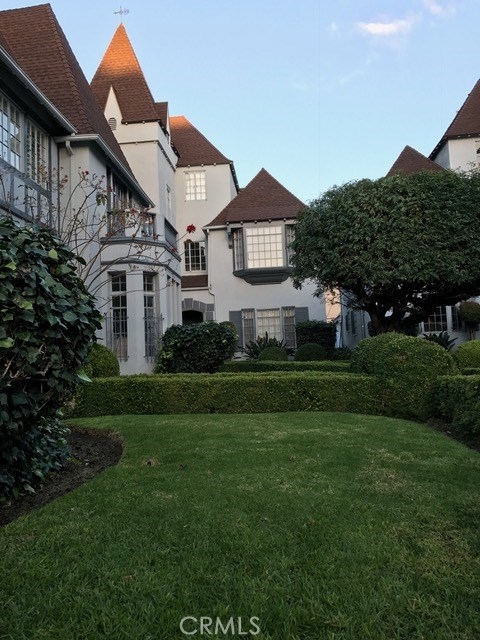 1936 Classic French Normandy Chateau condo located in booming Ktown within easy walking distance to shopping, restaurants, the Wiltern & metro station. Beautifully renovated 1st floor rear corner unit offers manicured courtyard entrance and European flair with original character features intact. Newly refinished ebony floors with 10' high ceilings, refurbished original crown molding, custom crafted lighting alcove in formal dining room & an exquisite decorative fireplace mantel is the centerpiece of the spacious living room. Kitchen has been completely upgraded including custom cabinetry, marble counter tops, decorative backsplash tile, custom island, wine fridge, high end appliances and Ann Sacks porcelain floors that look like wood. Master bath with custom marble vanity & floors, separate tub & shower. Modern upgrades include recessed lighting, soothing interior colors, updated electrical, Central AC and heat, separate in unit laundry room with washer & dryer included. 1 car garage parking. Absolutely gorgeous unit with too many upgrades to mention.
