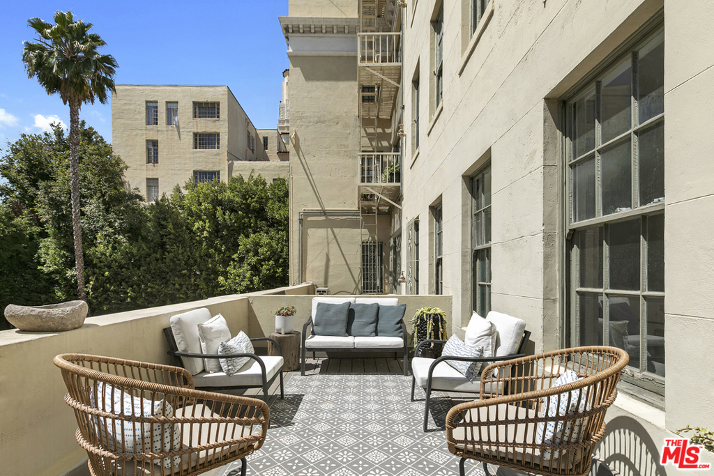 Chateau Chaumont is one of the jewels of French architecture in Koreatown. The 1928 historic building holds 15 units, creating a familial community among owners. At nearly 2400 sf, unit 23 is one of the most coveted homes in the building. The sprawling layout is flooded with natural light & includes two large en-suite bedrooms & a third bed & bath. This unit maintains the buildings original charm through the French plaster mantle, coved ceilings, broad picture windows, & spacious balcony. The kitchen & bathrooms have been brought into the 21st century, while split system ACs quickly & efficiently cool the home down. Centrally located in Koreatown, youre just moments away from the Wiltern, Parks Barbeque, Guelaguetza, R Bar, & a slew of other notable favorites. Chaumont is a Mills Act approved building, and it has been used many times as a filming location; this can offer owners additional income should they choose to participate.