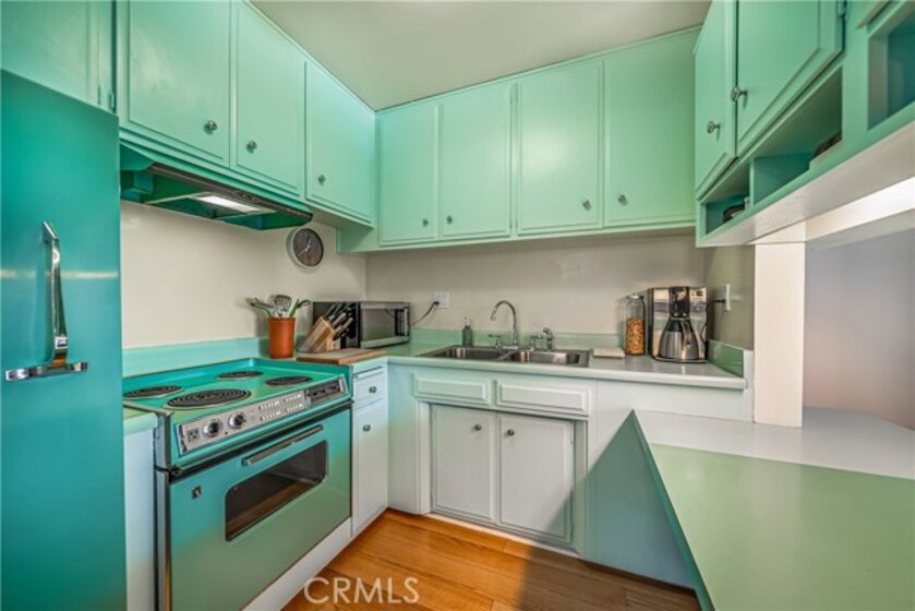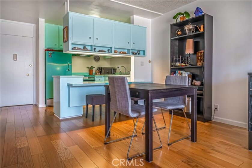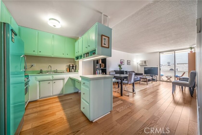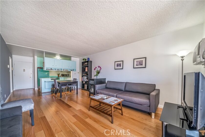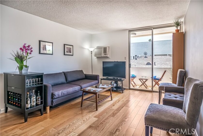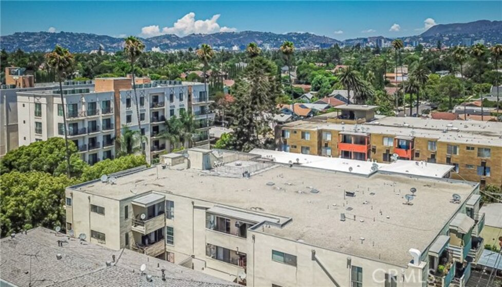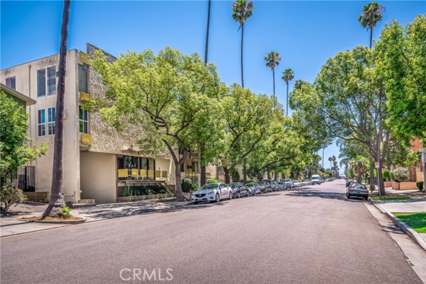 Welcome home to this bright and cheerful one bedroom one bath condo with amazingly cool retro vibes! Prime Hancock Park location close to Larchmont Village shops and restaurants, The Wiltern and Western Avenue. This quiet top floor unit features an open concept floor plan with recently upgraded hardwood flooring throughout. The vintage kitchen features a breakfast bar that opens to the dining area and an abundance of storage. Located off of the living area is a balcony perfect for your morning cup of coffee or to enjoy the evening sunsets. The spacious bedroom has a large window with beautiful treetop views and two closets. The retro theme continues into the pristine bathroom with black and white tile floors, tons of counter space, and a vanity area. Other highlights include a rooftop deck, with views of Griffith Observatory and the Hollywood Sign, newer air conditioning unit, and fresh paint.