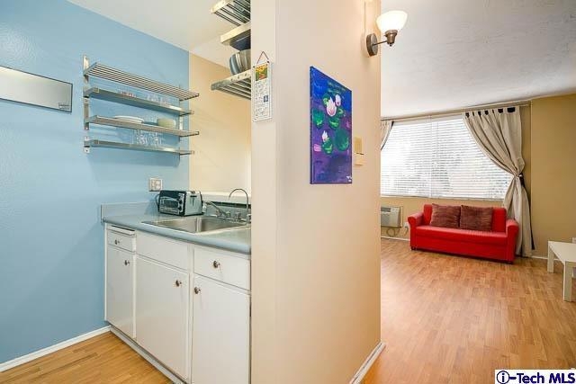 Welcome home to this sleek studio in the popular Garden Villas Condominiums with low HOAs. This light and bright south-facing unit features hardwood floors, smooth ceilings, updated bathroom and kitchen counters, newly glazed bathtub and bidet. Enjoy resort-style living with community fitness room, hot tub, sauna, library and activity room with large screen TV. The unit includes one off-street parking space and is only two blocks to the Metro Purple Line stop!