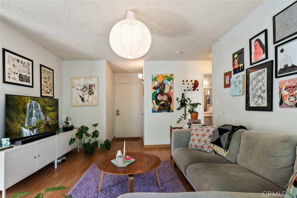 Top floor, Beautiful Garden Villas Condo! Must see, gorgeous 1/Bedroom, 1/Bath Condo. Third floor unit features 580 Sq. Ft. with nice open floor plan, gleaming wood-like floors in the living area / bedroom. Tile floors in kitchen, dining area and bath. Light and bright living room has access to a sunny balcony. Good location in complex with matured trees providing privacy. Upgraded with nice counters, cabinets and stainless-steel appliances. Bedroom has a large walk-in closet with built in organizers. Gated community offers lush tropical landscaping, recreation room, sauna and gym. Building has 2/elevators and a common laundry room. Gated subterranean parking with 1/assigned space and extra parking at front available. Centrally located, close to Wilshire Center, Downtown Los Angeles and Hollywood. Conveniently close to public transportation, restaurants and shopping.