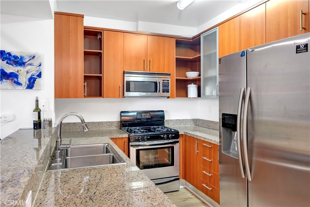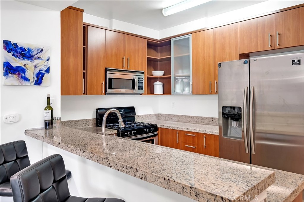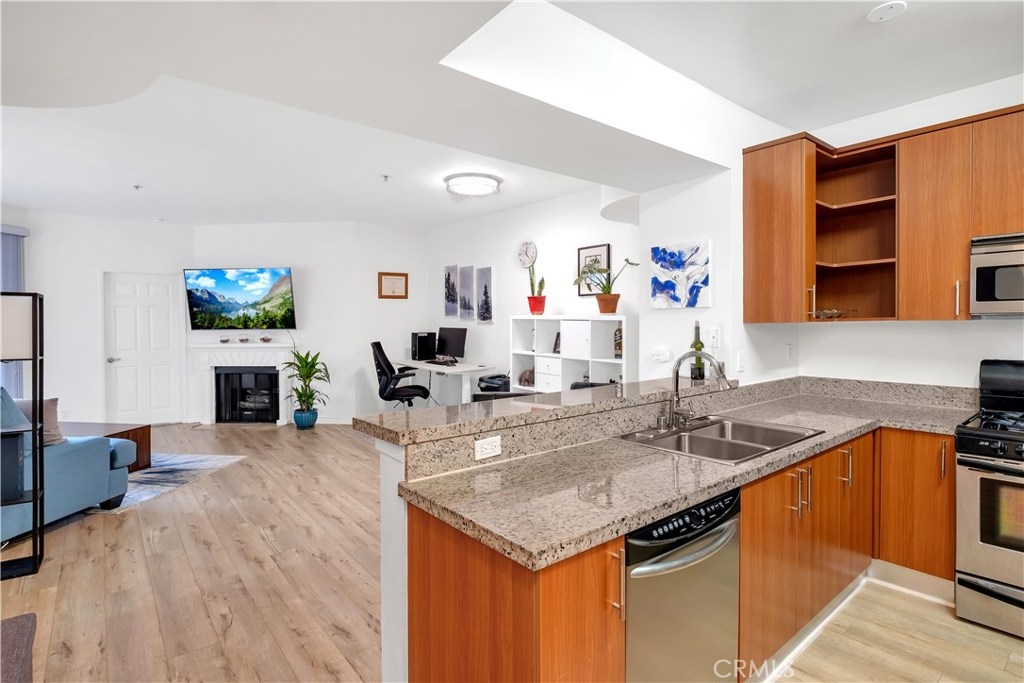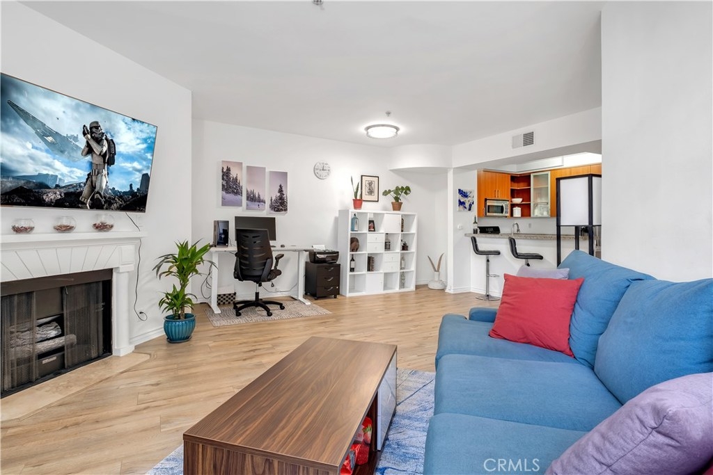 Gorgeous 3rd Story CONDO with BALCONY and ROOFTOP POOL! This beauty features fresh interior paint, sleek wood floors, and more! Marvel at the abundance of natural light upon entering! Kitchen boasts stainless steel appliances, granite counter tops, breakfast bar, and ample cabinet space! Living room flows seamlessly from kitchen and adorns a cozy fireplace, perfect for those cooler months! From the living room, make your way onto the expansive balcony, a wonderful spot to enjoy your morning coffee! Both bedrooms showcase a full bath, walk-in closet, and plenty of space! Additional perks include 2 covered parking spaces, community gym/sauna, and rooftop access. Close proximity to Metro station, Koreatown, eateries, shops, schools, and so much more! This gem truly has it all and is a MUST-SEE! Request a showing before it’s too late!
