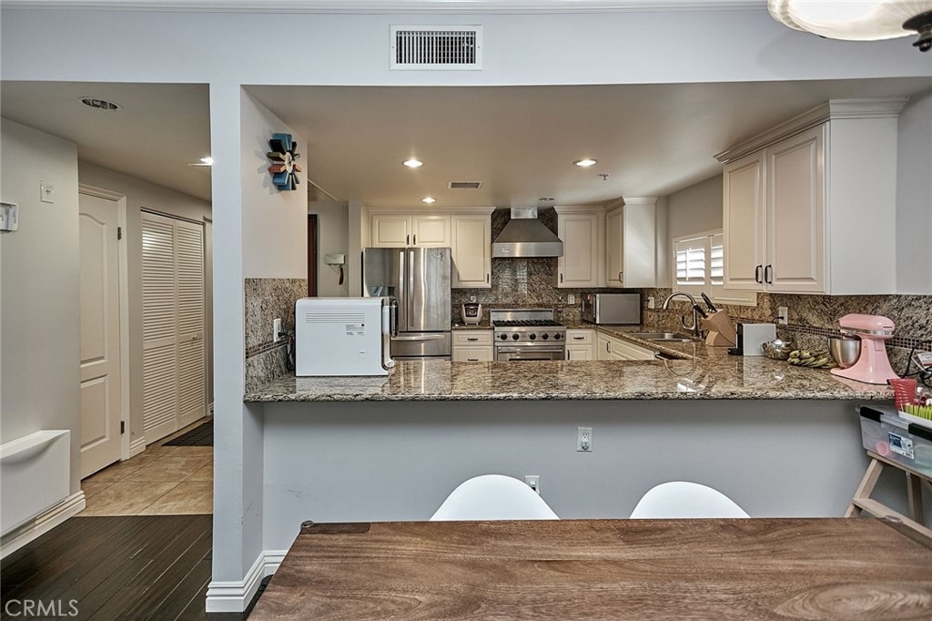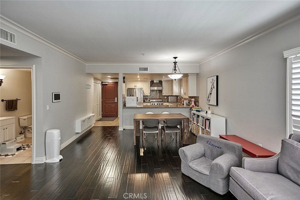Fantastic condo in the heart of Koreatown! This unit features 2 beds and 2 baths with 1,090 sq.ft. of living space. Bright and airy floor-plan perfect for a small family. Spacious kitchen with granite counter-tops, large tile flooring, recessed lighting and top of the line stainless steel appliances. Kitchen leads to the dining area and the master living room with hardwood flooring, recessed lighting, a cozy fireplace and access to the balcony. Master bedroom with recessed lighting and hardwood flooring leading the beautiful master bath with awesome contemporary design. New sink and cabinet in common bathroom. New closet doors for both bedrooms. In unit laundry closet and key-less door entry system. Storage option next to garage and 2 car tandem gated parking. Close proximity to all that Koreatown has to offer!