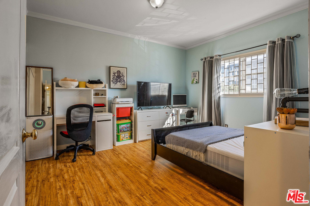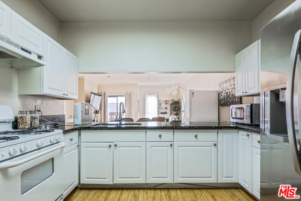 Location !!! bright front facing single-level condominium located in prime Korea town. Featuring 2 beds + 2 baths with appx. 1180 sq. ft. First floor unit, elevated above ground floor with open floor plan w/spacious living room with fire place , 9 feet high ceilings, laminate flooring and sliding glass door opening to a balcony. Beautiful Remodeled kitchen with granite counter tops and custom cabinetry. side by side full size laundry, central A/C & heat.