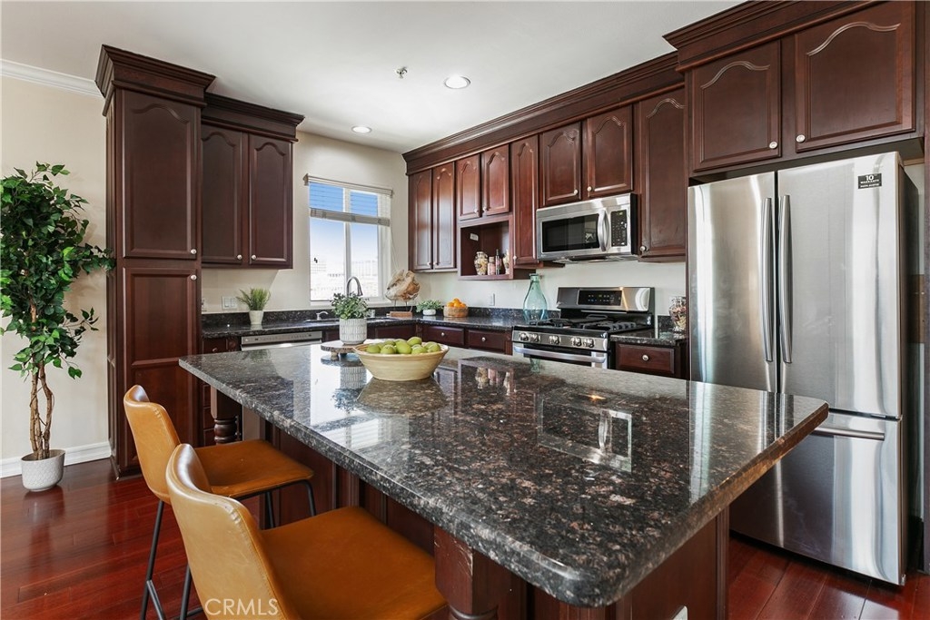 Airy, bright and modern 3 bed/2 bath penthouse unit in the heart of Koreatown! Catch glimpses of the ocean and Hollywood sign with west and north facing views. Just a 10-minute walk from the Wilshire and Western Metro Subway station. Very well-maintained and walking distance from the Galleria, Koreatown Plaza, city dining, markets and cafes. Convenient commutes to Santa Monica, Hollywood or Downtown. Spacious rooms and corner orientation with no shared walls. Beautiful wood floors. Upgrades include new kitchen appliances, tankless water heater, and new paint. Delightful and breezy open layout. Comes with two tandem basement parking spaces, easy access to the elevator and private basement storage.