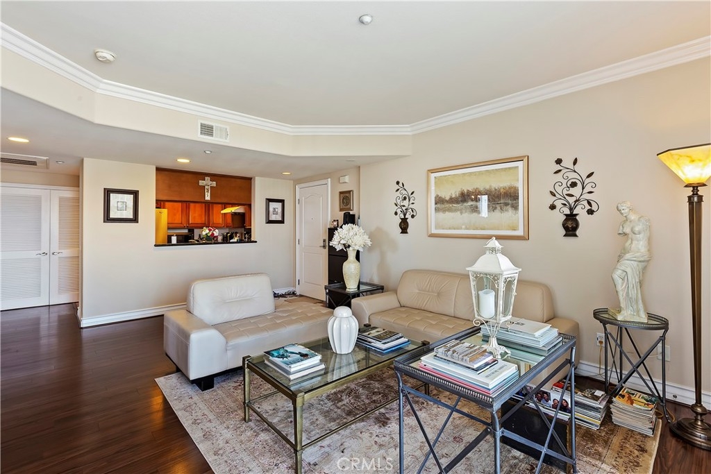 Welcome to this exquisite well-appointed home situated at a private gated condominium in the best part of LA’s Koreatown. This cozy 2nd floor condominium unit features a spacious living room that opens up to a balcony, perfect for after work hours sipping cocktails while enjoying city views. Open floor plan. Crown moulding. Recessed lighting. Tray ceilings. Bright kitchen with granite countertop. Stained cabinetry. Master suite with tons of closet space. Marble bath in masters. Originally 3 bedrooms and 2 baths, 2nd bedroom was converted into a dining area; 3rd bedroom into a beautiful den. Doors were removed but closets remain intact. Both can easily be converted back to bedrooms with doors re-installation if Buyer prefers to do so. Washer/dryer in unit closet. Wood laminate and tile flooring. Assigned and secured 2-car garage tandem parking spaces. Amenities include gym/recreation room, courtyard with barbecue, trash chute, keyed-access elevator and lobby for residents. Home is conveniently located close to the 10, 110 and 101 freeways and major thoroughfares. Centrally located to schools, parks, coliseums, restaurants, supermarkets, shopping and the vibrant nightlife of Downtown LA! Hurry, get in the car and check it out. Won’t last!