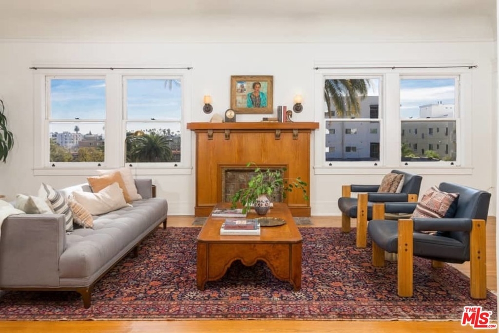 The most stunning unit in the gated, historic Miramonte Terrace. Situated on the top floor and created by combining 2 units, it is the largest available floor plan in the building. Flooded with light because of its Southern Exposure, this corner unit has no shared walls, windows on 3 sides and 2 Bedrooms & 2 full bathrooms (including a Principal Bedroom with its own, adjoining sitting room). Replete with original 1920's detail and charm; sliding sash windows with built-in screens, oak floors, custom doors, built-in shelving and a living room mantle. The updated kitchen marries old world charm and modern functionality. It includes 3 assigned parking spaces, an additional storage unit and public game rooms, rooftop deck and a sunroom. Located in central Koreatown, and only moments to downtown, Larchmont and Hollywood, it provides sanctuary in the heart of the city and embodies the best of life in Los Angeles.