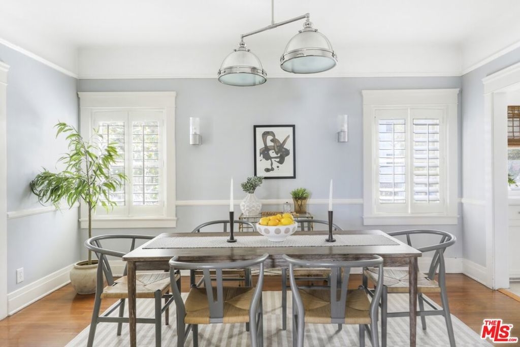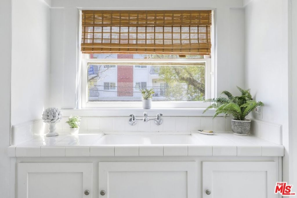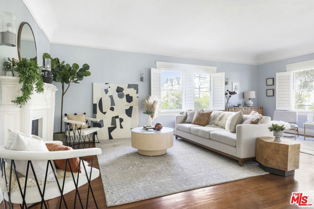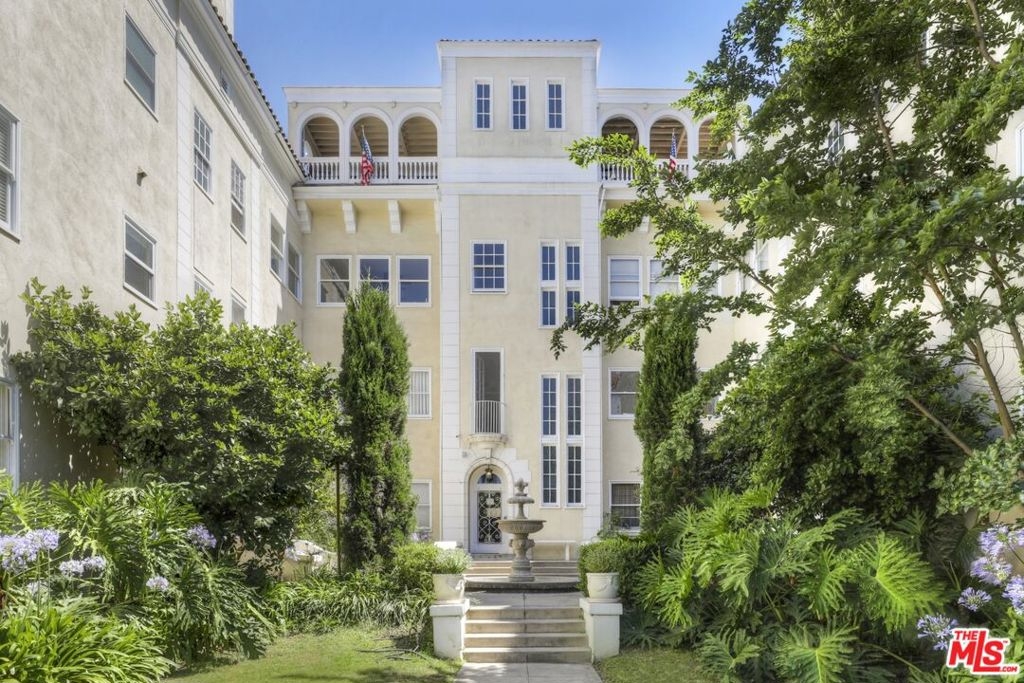 Stunning, light-drenched corner unit in the historic gated community of Miramonte Terrace. This spacious home is filled with 1920s charm and elegance, including built-in shelving and a living room mantle, oak floors, original tiles and light fixtures, original glass door knobs and hardware, crown moulding and many other period details. Upon entering, a long entry hallway with ample storage leads to a spacious and chic living room, with its own private balcony. Enjoy outdoor dining or leave the door open to catch an evening breeze. An adjacent space with glass French doors is an ideal home office or den. A second set of glass French doors opens to an oversized formal dining room, with additional closet space and sweet built-ins. The sunny, vintage kitchen has plenty of storage and shelving. Off of the kitchen, a powder room with darling original tile and a separate storage area provide extra utility. Surrounded by greenery and windows on all sides, enjoy a serene escape within the city. The Miramonte Terrace is one of LA's historic gems, embodying classic Italian Revival architecture. Building conveniences include a garage and assigned parking space, rooftop deck and sunroom, meeting room, and laundry room. Centrally located in Los Angeles; near the best dining, markets, and nightlife of Koreatown. Moments to Larchmont Village, Hollywood and Downtown LA. Easy access to public transportation.