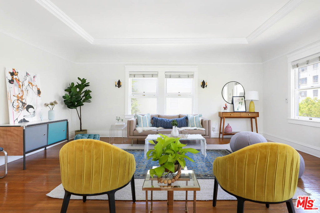 This large and light-filled condominium places you center stage in happening Koreatown, in the historic gated community of Miramonte Terrace. The beautifully maintained one-bedroom home resonates with Parisian chic, presenting elegant proportions with oversized windows and a breezy private balcony capturing winsome city views. Period details are found throughout including coved ceilings, crown moldings, built-ins and hardwood flooring. The vintage-inspired kitchen is rendered in white with an adjacent space that's perfect for your home office or den; the handy powder room is a nice amenity for guests. Conveniences include parking for two cars, storage space, rooftop lounge access and gated entry. Miramonte Terrace is one of LA's great historic jewels, an Italian Revival monument of just 16 residences set amidst rolling lawns in a city-central location. The best of Koreatown is around the corner including markets, dining and nightlife. Hollywood and Downtown LA are within easy reach.