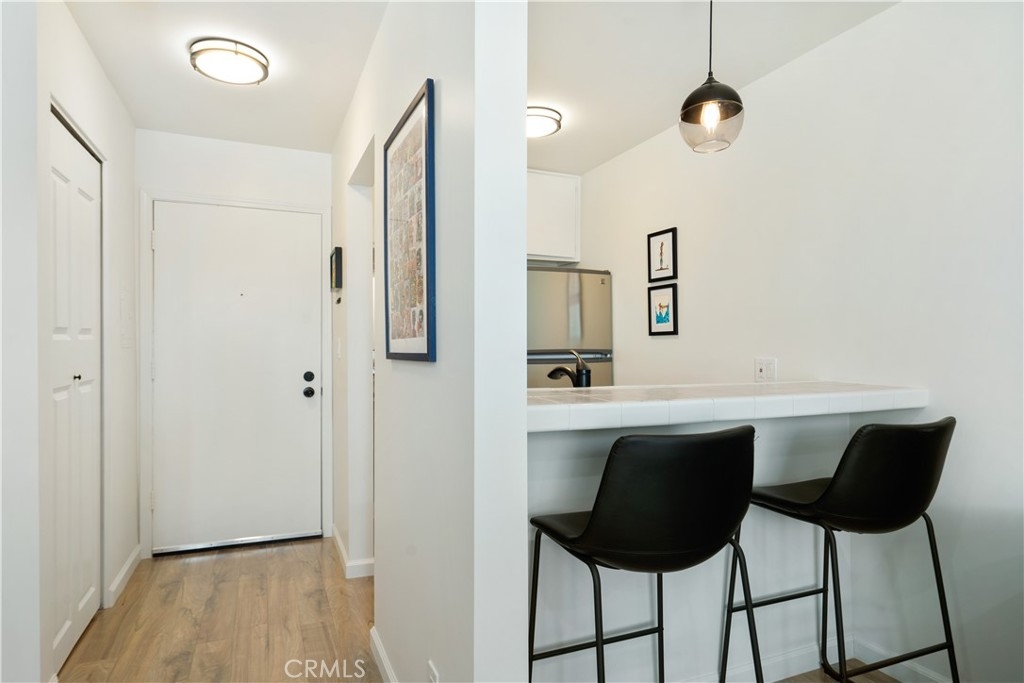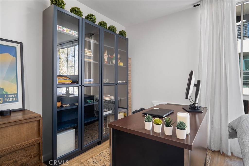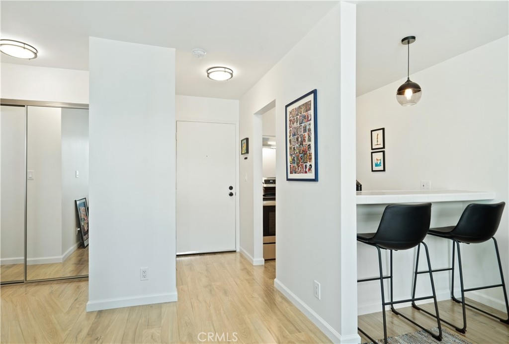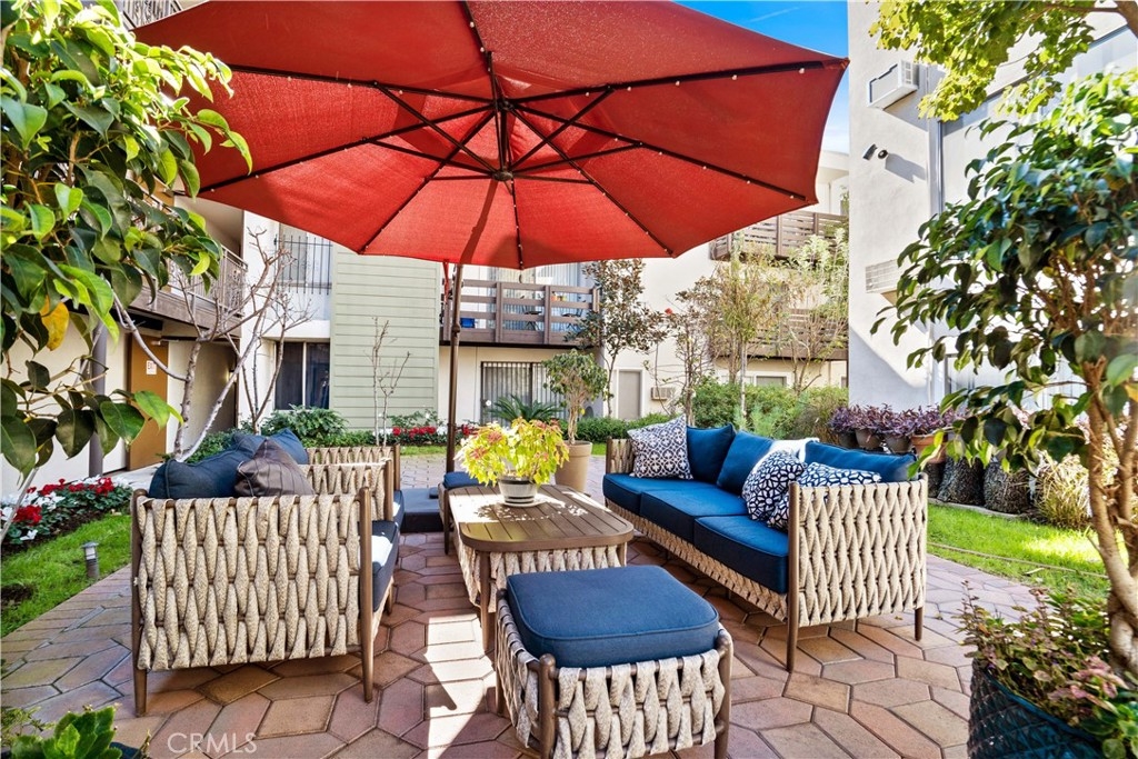 Top floor studio in desirable resort-like courtyard community in "Korea Town"! Walking through the well-maintained fountain courtyard and lush landscaping lead you to the wonderful cozy studio on the top floor that faces the quiet backside of the building. The studio was beautifully remodeled less than 2 years ago with engineered wood floors, and smart technology throughout. Park Villas Condos is a beautiful community in the lively heart of Los Angeles, with tons of open space, lush landscape, and amenities including a spa, gym, recreation room, & convenient community laundry. Short distance to tons of restaurants, shops, entertainment, markets, and more in Korea Town! 2 blocks from the Purple line Metro station. The unit comes with 1 assigned parking spot. Additional storage can be rented based on availablibility from HOA.