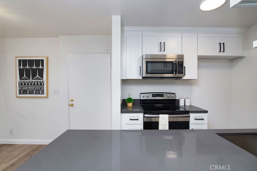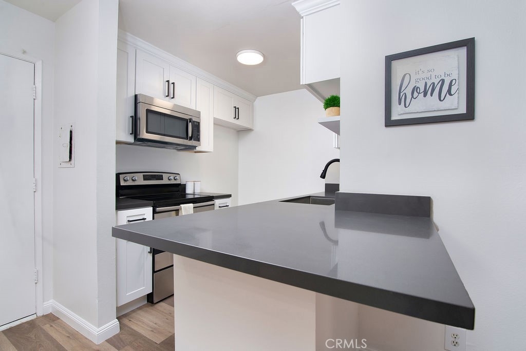NEWLY REMODELED home with a modern touch. High quality fixtures through out the entire home. Great open street view from the bedroom and balcony. Open air front door entrance. Turnkey and ready to move in! Home is bright and gets direct sunlight. Centrally located in Los Angeles and prime area of Koreatown. Walking distance to grocery stores, cafes, restaurants, Target, Starbucks, shops, entertainment and more. New modern shaker cabinets in the kitchen and bathroom with square cabinet handles. New black stainless steel pull down kitchen faucet. New concrete grey quartz kitchen countertops with a 42 in peninsula side. New oversized rectangle kitchen sink. All new stainless steel kitchen appliances. New bathroom quartz countertops, fixtures and toilet. New seamless SPC flooring through out the home. Mid-century modern light fixtures and more. One assigned parking space next to the elevator with available street parking. Unit is close to the elevator. Gym. Spa. Laundry room. Buyer to verify all information.