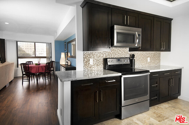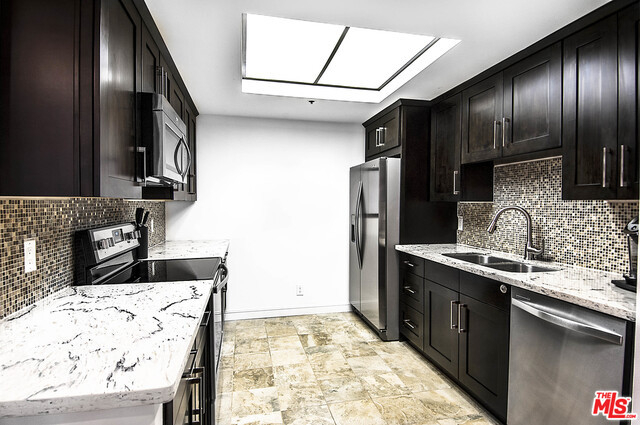 Beautifully renovated, pristine front facing, light and bright corner unit with open floor plan, city views and private balcony. Bedrooms on opposite ends each with own bath and private. Enjoy entertaining in this sleek kitchen with its newer steel appliances, quartz counter tops, back splash, cabinets, sink and lighting. Luxuriate in the baths which boast new quartz counter tops, mirrors, light fixtures, re-glazed tubs with a separate shower and dual vanity sinks in master. New flooring, smooth ceiling, recessed lighting, and updated closets throughout. Inside laundry. 2 car parking and controlled access. Fantastic location with restaurants and shopping nearby. Rare offering.