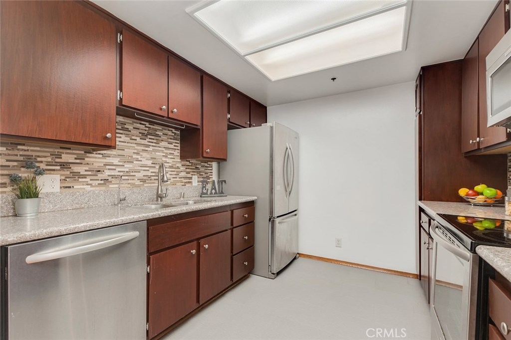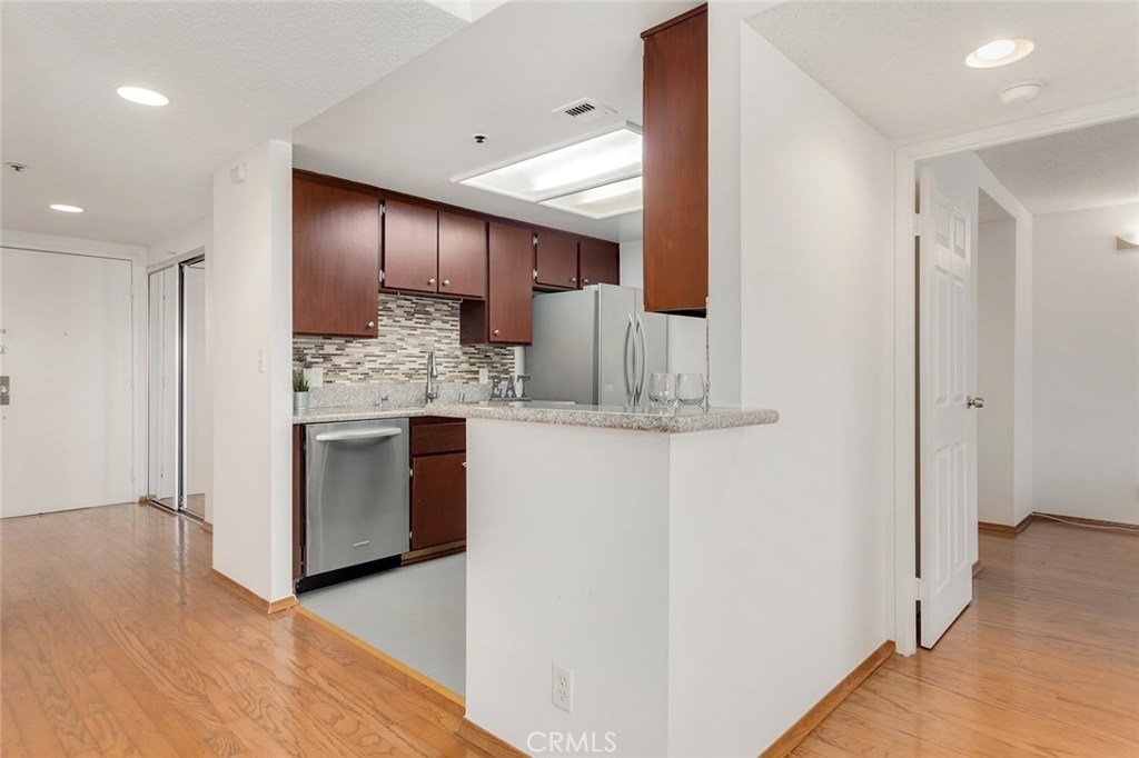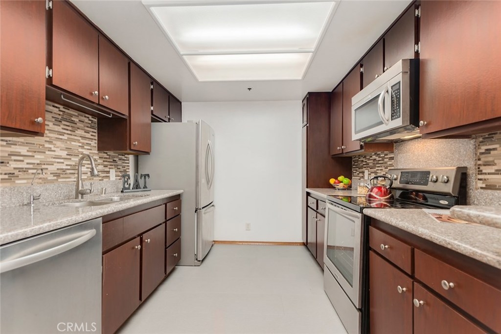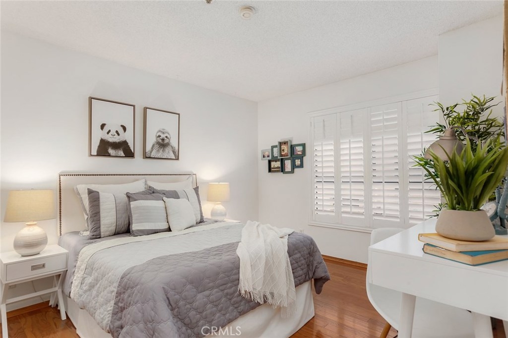 This beautifully renovated, front-facing property is in the heart of Koreatown! Tucked between Western and Vermont and just south of Wilshire, this spacious, light-filled unit is steps away from everything Koreatown has to offer! The renovated, galley kitchen leads to a very large, open-concept dining and living room. Sliding glass doors open to a modest balcony with city lights views. The oversized master bedroom has a wall of closet space and an en suite, full bath with dual vanities. The second bedroom sits at the opposite end of the unit from the master and is very private with a large closet. In-unit, stackable laundry and a second full bath complete the floorplan. All windows have composite plantation shutters and hardwood floors throughout. Amenities include community pool and spa, gym and 24/7 building security. Two tandem parking spaces in the gated, underground parking garage, located right next to the building entrance. Very clean and move-in ready home!