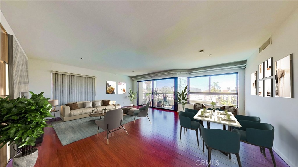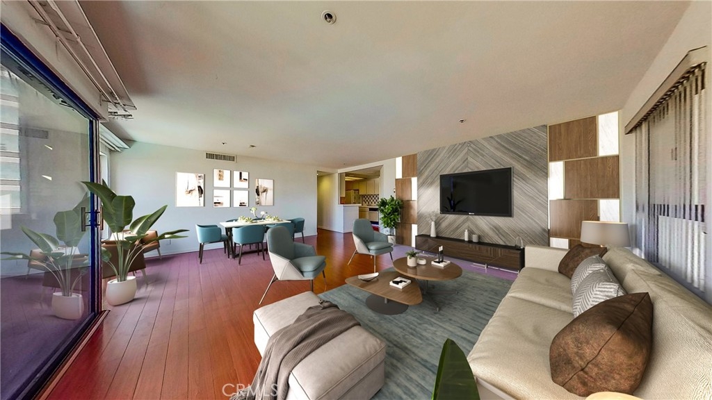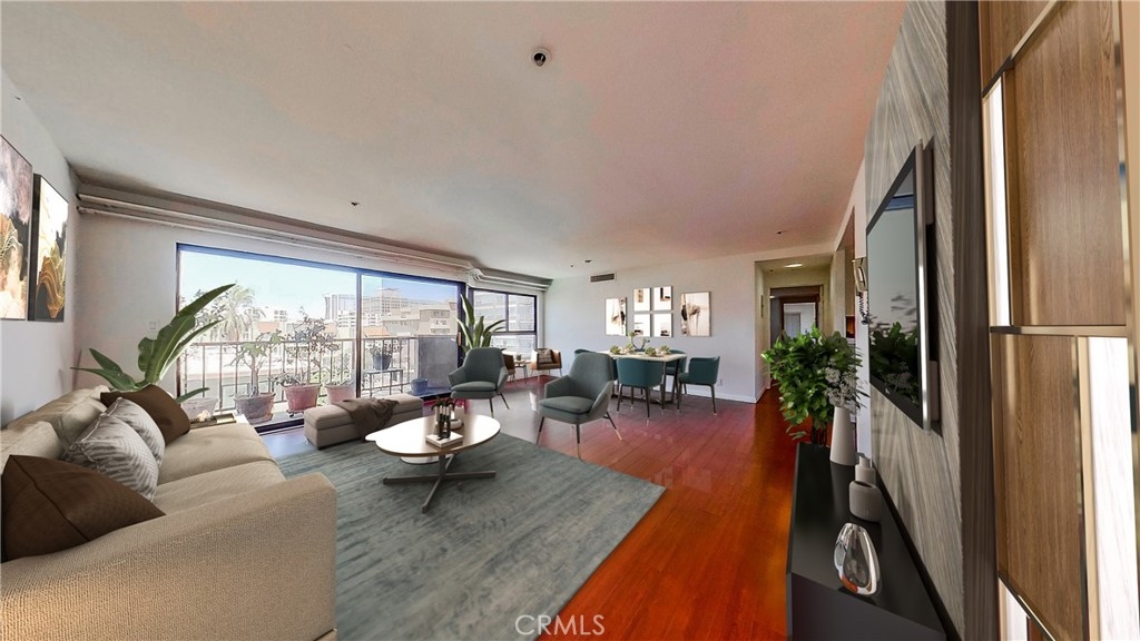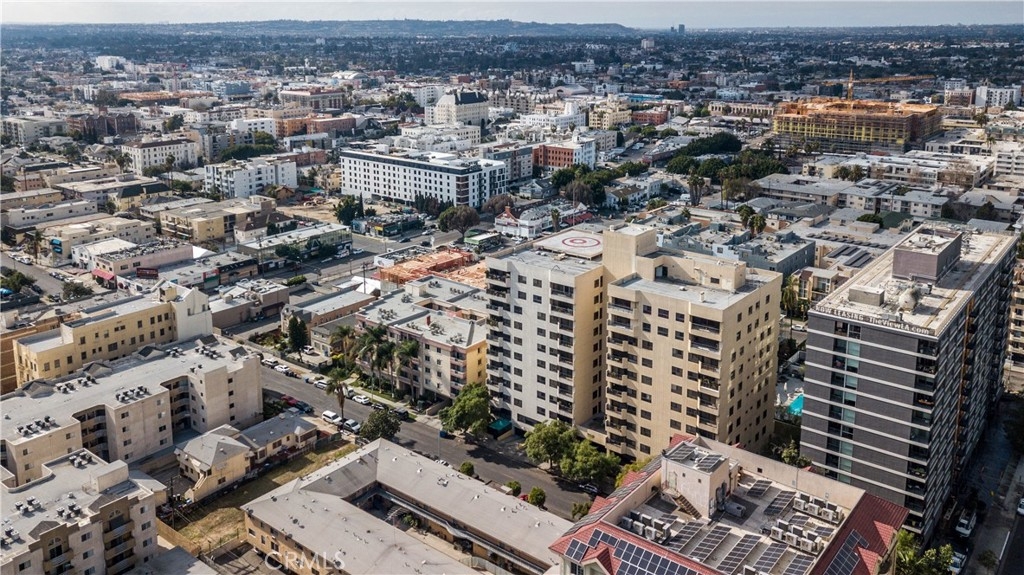 The condominium complex centrally located in Prime location Mid-Wilshire/Korea Town. This is two bedrooms and two bathrooms with an open floor plan. Nice city view from Livingroom area. Inside laundry hook up. Amenities come with Pool, gym, spa, and conference room. Updated Wood floors throughout the Living room, hallway, and two bedrooms. Kitchen Ceramic Countertop with Tile floor. 2 underground Tandem parking spaces and keyless door entry, Security Guard on duty, and onsite manager live in the Community. All common area has been upgraded including three newly replaced elevators in 2019. HOA does include water and trash. The Inside condo Photos Virtually staged.