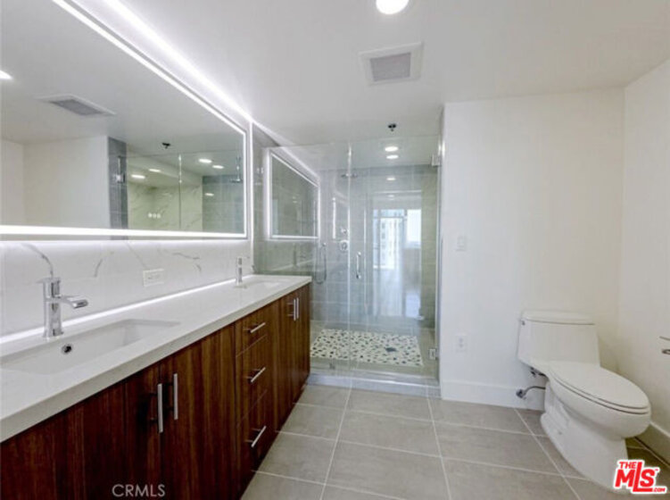 Experience elevated urban living in this southwest-facing 3-bedroom, 3-bathroom corner unit on the 10th floor of Solair, a premier high-rise at Wilshire and Western. Spanning approximately 1,700 square feet, this residence offers floor-to-ceiling double-paned windows that flood the space with natural light and provide sweeping views of the Los Angeles skyline. The open-concept layout seamlessly connects the living, dining, and kitchen areas, ideal for both daily living and entertaining. The kitchen has been recently updated with new quartz countertops, a modern sink, microwave, and gas cooktop, while retaining the original contemporary European-style cabinetry. An individual water shut-off valve has also been installed for added convenience. The primary suite features a walk-in closet and a fully remodeled en-suite bathroom adorned with upscale finishes. The second bedroom also boasts its own remodeled private en-suite, while the third bedroom is conveniently located near a hallway bathroom with a walk-in shower, perfect for guests or as a home office. Additional highlights include two assigned parking spaces in a secure resident garage. Residents enjoy access to a 7th-floor resort-style amenity deck featuring a heated swimming pool, spa, private cabanas, BBQ area, and a dedicated dog park. Indoor amenities include a well-equipped fitness center, elegant residents' lounge, stylish clubroom, business center, conference rooms, and an on-site coffee bar. The building offers 24-hour concierge service, controlled access, and on-site security. Situated above the Purple Line Metro station and close to HMart, CVS, Ralphs, and Koreatown's vibrant dining and shopping scene, this home places you in the heart of it all. Ground-level retail and dining options include Starbucks, Paris Baguette, a beauty salon, and a Korean BBQ restaurant, all just steps from the lobby. Don't miss the opportunity to own this exceptional unit in one of LA's most desirable high-rise communities.