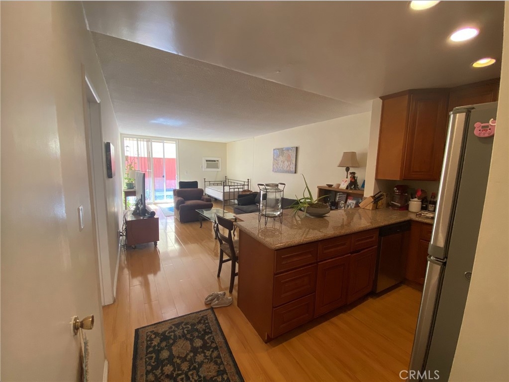 LOCATION! LOCATION! LOCATION! Spacious 1BD/1BA condo conveniently located close to DTLA. Move-in condition. Beautiful newer laminated hardwood floor. Features spacious outdoor area, refrigerator and dishwasher included. Assigned parking spot in the garage and on-site laundry. Safe location with gated subterranean parking. Most of the other homeowners have been there for a long time. Cross-Streets are 5th & Kenmore and located conveniently in the heart of Koreatown. Less than a 5-minute walk to Chapman Plaza where restaurants, coffee shops, and retail stores are located. Located conveniently close to the shopping mall on 6th where spa and super market are.