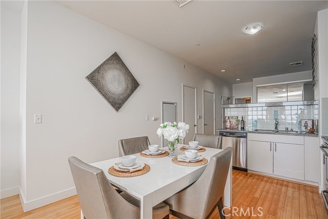Experience modern urban living at The Mercury, located in the heart of Los Angeles. This luxury loft-style condo offers the perfect opportunity for those seeking a stylish live/work space — ideal for professionals or small business owners looking to combine home and office in one sophisticated setting. The open loft layout features wood flooring throughout, soaring high ceilings, and a stunning south-facing view of the iconic LA skyline. The spacious closet and full bathroom with a tub, ample storage, and a large mirrored medicine cabinet add both function and convenience. Enjoy resort-style amenities including concierge service, a rooftop pool, BBQ area, and fitness center, all with breathtaking city views. Perfectly situated across from the Metro station and near the Financial District, this location offers unbeatable convenience with endless dining, shopping, and entertainment options all within walking distance. Be creative — this home office concept could be your next smart investment and a cost-saving solution in one of LA’s most vibrant neighborhoods.