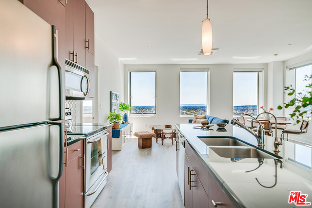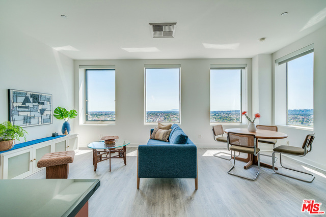 This stunning unit is located in the magnificent Mercury Building in Korea Town. Located on the 22nd floor, this modern-luxury high-rise condo has amazing views of Los Angeles and all the way to Catalina on a clear day! The 2 bedroom / 2 bathroom unit has one master bedroom and bath and a second loft style bedroom. There is lots of closet space and stackable washer and dryer in the unit. The building has controlled access with 24-hour security. The rooftop has a grass area, fitness center, pool and jacuzzi all with panoramic views of Downtown LA, Griffith Park Observatory, and the Hollywood sign. Located right across from the Wiltern theatre, near lots of great Korean BBQ restaurants, Ralphs, and the Metro Wilshire/Western station.