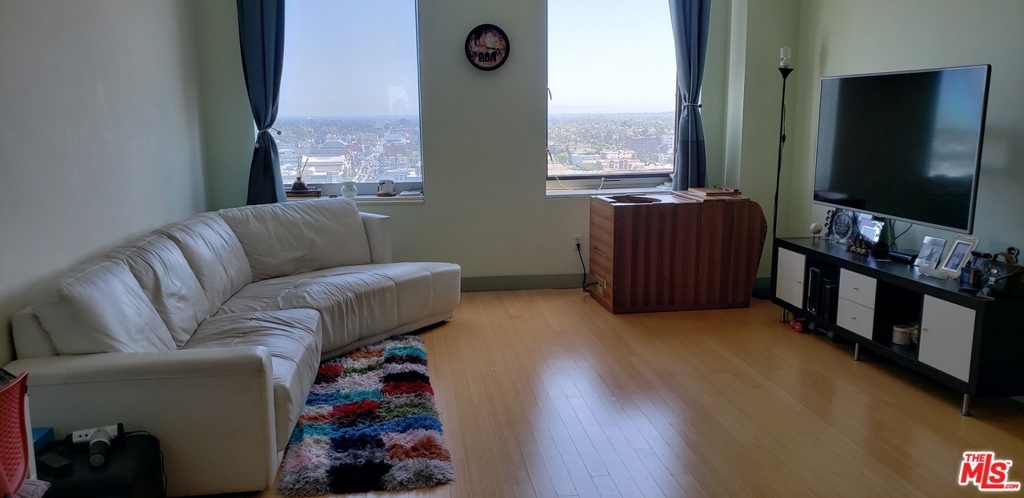 Luxury and modern high-rise condominium in Mid-wilshire and west of Downtown LA! "The MERCURY is walking distance to restaurants, shopping malls, grocery market and theaters. It is very close to Metro Lines and the bus station. A bright 14th floor unit facing south with natural warm daylight coming from the two over sized windows and you can enjoy unobstructed panoramic city view as well. Bamboo wood floor in the living room and wood texture vinyl floor in the bedroom. Bright open floor plan and high ceiling makes this unit feel very spacious. All-in-One system Washer and Dryer in the unit and also French door Refrigerator with Ice maker. Lots of closet spaces with organized storage racks. The unit has 1 reserved parking space which is the closest spot from the elevators. 24 hours security, community guest parking lots and the lobby desk services for your delivery packages or other services. The newly remodeled rooftop sky deck has a pool, spa, gym, barbecue grills and more.