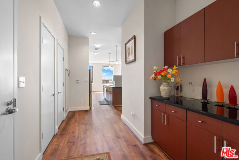 Experience luxury urban living at The Mercury Condominium! This highly desirable southwest-facing unit showcases breathtaking city views from its spacious and beautifully designed interior. The residence features two generous bedrooms, two modern bathrooms, and an open living area with high ceilings and a mix of wood laminate, tile, and carpet flooring that creates a warm and elegant atmosphere. Custom cabinetry, designer paint, and ample storage add both style and functionality. Recent upgrades include new toilets and updated fixtures throughout, enhancing comfort and value. The unit also comes with two side-by-side parking spaces for your convenience. Residents at The Mercury enjoy resort-style rooftop amenities, including a fitness center with panoramic views, a pool with Jacuzzi spa, a tranquil grass garden, and BBQ areas perfect for entertaining. The building offers 24-hour security, on-site management, and ample guest parking for added peace of mind. Ideally located in the heart of Koreatown, The Mercury is surrounded by popular shops, restaurants, and essential services all within close reach. Don't miss this opportunity to own a stylish home in one of Los Angeles's most vibrant neighborhoods!