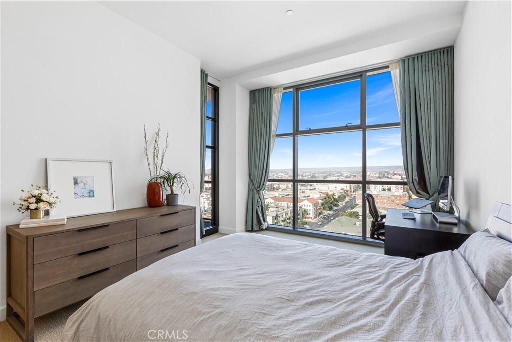 Enjoy AMAZING VIEWS in this designer finished NORTH-FACING unit in the prestigious high-rise Summit on Sixth. Large PRIVATE balcony with panoramic views of the world-famous Hollywood Sign and Griffith Observatory from bedrooms and the living area. This 2-bedroom 3-bathroom open-concept home is bursting with light with luxurious finishes that sets it apart from every other unit in the building. High ceilings soar up to 11.5ft with floor-to-ceiling windows. Gourmet kitchen has stainless steel appliances, modern cabinetry, and granite countertop perfect for entertaining guests. Enormous primary suite is complete with walk-in closet, oversized tub, walk-in shower, and his and her vanities. Secondary room is also equipped with an en suite bathroom with walk-in shower and closet. This high-end building is equipped with five-star amenities including 24-hour security and concierge, package retrieval and tracking system, gym, sauna, and indoor golf simulator. Two designated underground side-by-side parking with EV CHARGER INCLUDED. Located in the heart of Koreatown moments from countless restaurants, grocery stores, and the Metro station. This amazing home won’t last long – schedule a private showing today!