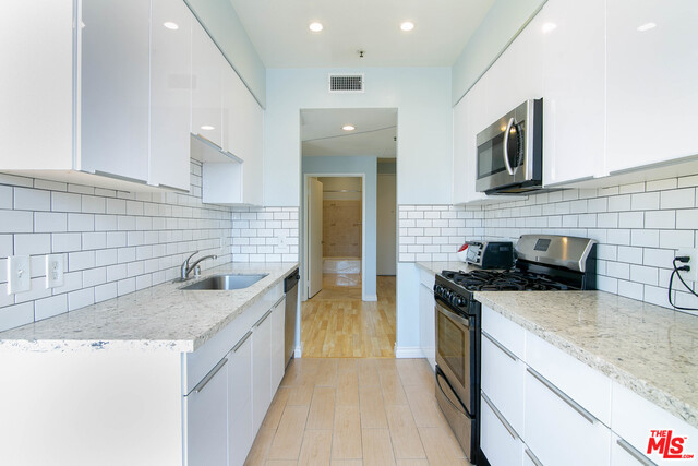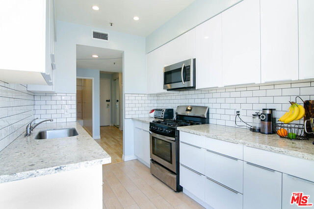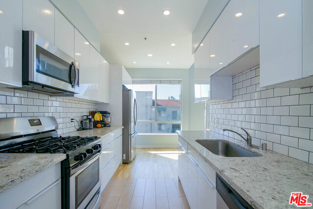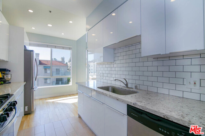 VIEW!! VIEW!! Welcome to this beautifully upgraded penthouse corner unit!! This northwest corner unit is very bright and airy, boasting 14 feet high ceilings and 270 degree panoramic views! No common walls! Newly upgraded modern kitchen featuring high-end stainless steel appliances. Two generous sized bedrooms are separated for extra privacy and two fully remodeled modern bathrooms! New recessed lighting and laminate flooring throughout!! Extra perks include laundry in unit and private extra storage. Low HOA due. Conveniently located in the heart of Koreatown, walking distance to endless nightlife, markets, restaurants, shopping and more!