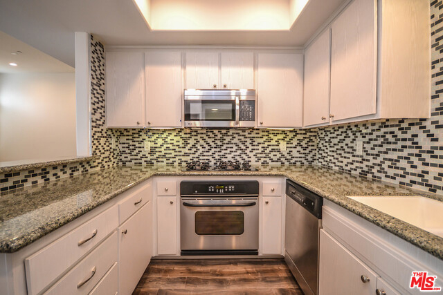 This S/W facing Penthouse unit is located on the unobstructed top corner. Stepping into the unit from the hallway is a bright and spacious living room with high ceilings and breathtaking views to the west. The floor and kitchen are tastefully upgraded along with fresh paints throughout this penthouse unit. All windows feature plantation shutters and LED recessed lights on a high ceiling creating warm and tranquil atmosphere. Spacious master bedroom suite offers walk-in closet with expensive bathroom with separate shower stall. This boutique 12 unit condo complex has all the best Wilshire Blvd has to offer with numerous shops, restaurants, and more within walking distance.