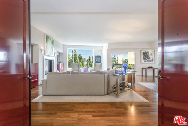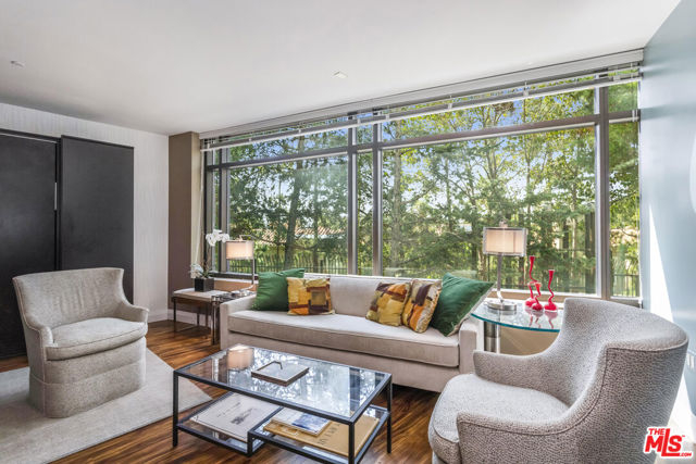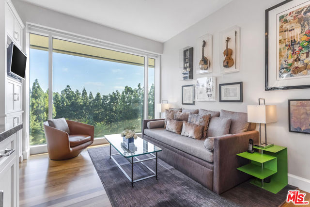 Extraordinary opportunity to own one of The Century's most sought-after residences. Beautifully appointed and one of only eight homes showcasing this premier 3,440 sq ft floor plan, 4B combines exceptional space with effortless flow for grand entertaining and comfortable everyday living. A secure, direct access elevator opens into a private foyer with impressive double-door entry. Inside, high ceilings and large windows provide unobstructed green vistas. The expansive living room features a fireplace and opens to a spacious terrace overlooking the gardens, while the formal dining room, easily accommodating 16+ guests, connects to a stylish, newly remodeled kitchen with striking quartz counters, top-tier appliances, breakfast bar, abundant storage and an adjoining den. The luxurious primary suite includes a private terrace, custom cabinetry, three closets, and a light-filled bath retreat. The second bedroom features custom built-in bookshelves with desks and an updated bath. Additional highlights include a service hallway with a concierge closet, private walk-in storage room at parking level, and an assigned wine locker. This residence can also be acquired at an additional cost, with the exclusive-use right to office #5, a 650 sf suite located on the garden level. Available only to owners at The Century, this office suite features a full bath, Murphy bed and is one of only seven units in the building- a rare luxury for those desiring a dedicated workspace or retreat without ever leaving home. Set on almost four acres of beautifully landscaped grounds, The Century represents the pinnacle of Los Angeles luxury living with world-class amenities: a 75-foot resort-style pool and spa, state-of-the-art fitness center with treatment rooms, private screening room, wine cellar, children's playroom, outdoor dining areas with fireplaces, BBQs, firepits and lounges, walking paths, water features, and even a fenced dog park. Residents enjoy white-glove service including 24/7 concierge, security, lobby attendant services and valet parking - all within an atmosphere of unmatched privacy and prestige.
