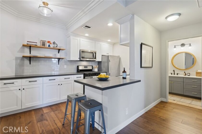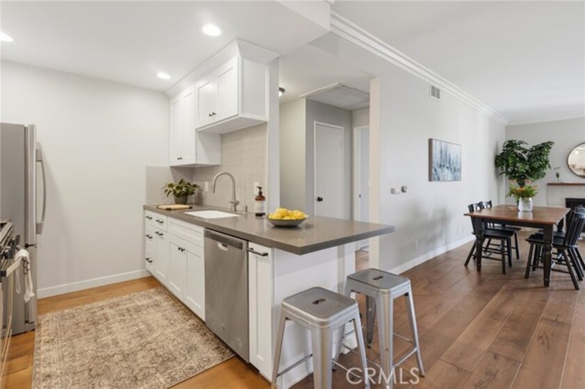 Rare top-floor, corner unit with no shared walls on one side in a well-maintained complex just blocks from the Expo Line, restaurants, the farmers market, and a short walk to downtown Culver City, including Sony Pictures, Amazon Studios, and Apple. Fully remodeled with quality finishes throughout, this light-filled condo features high ceilings and hardwood floors. The open kitchen is both functional and polished, with updated cabinetry, quartz countertops, stainless steel appliances, and recessed lighting. Two spacious bedroom suites are thoughtfully separated for privacy, each featuring new carpet, a walk-in closet, an updated bathroom, and direct balcony access. Additional features include central AC and heat, dual-pane windows, an in-unit washer and dryer, and two tandem parking spaces. Community amenities include a gym, pool, and gated garage with guest parking. HOA covers water and earthquake insurance.