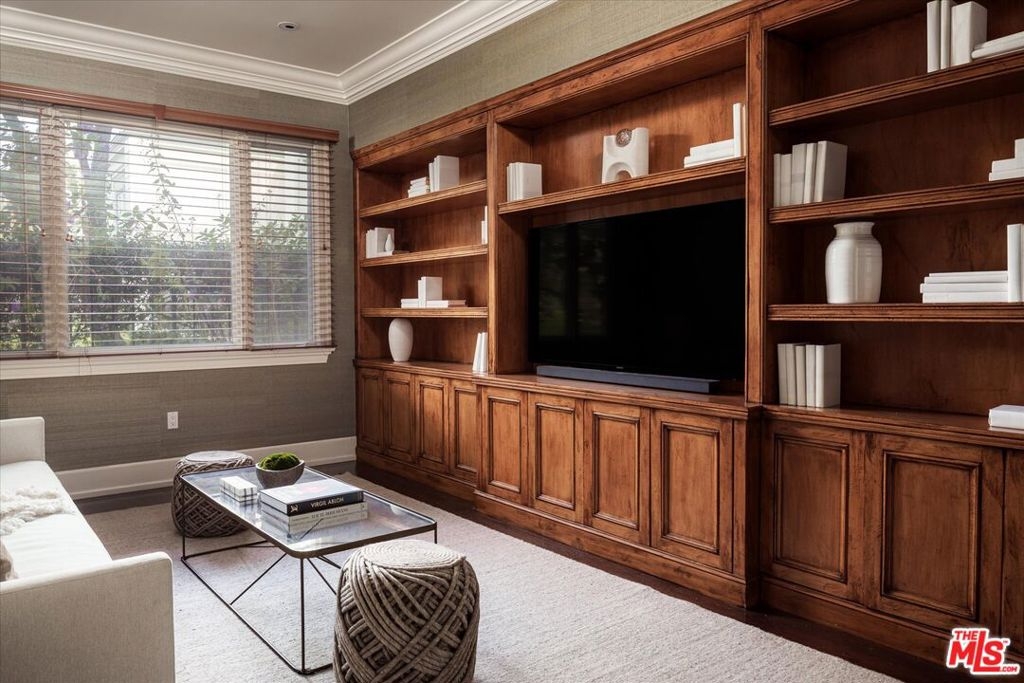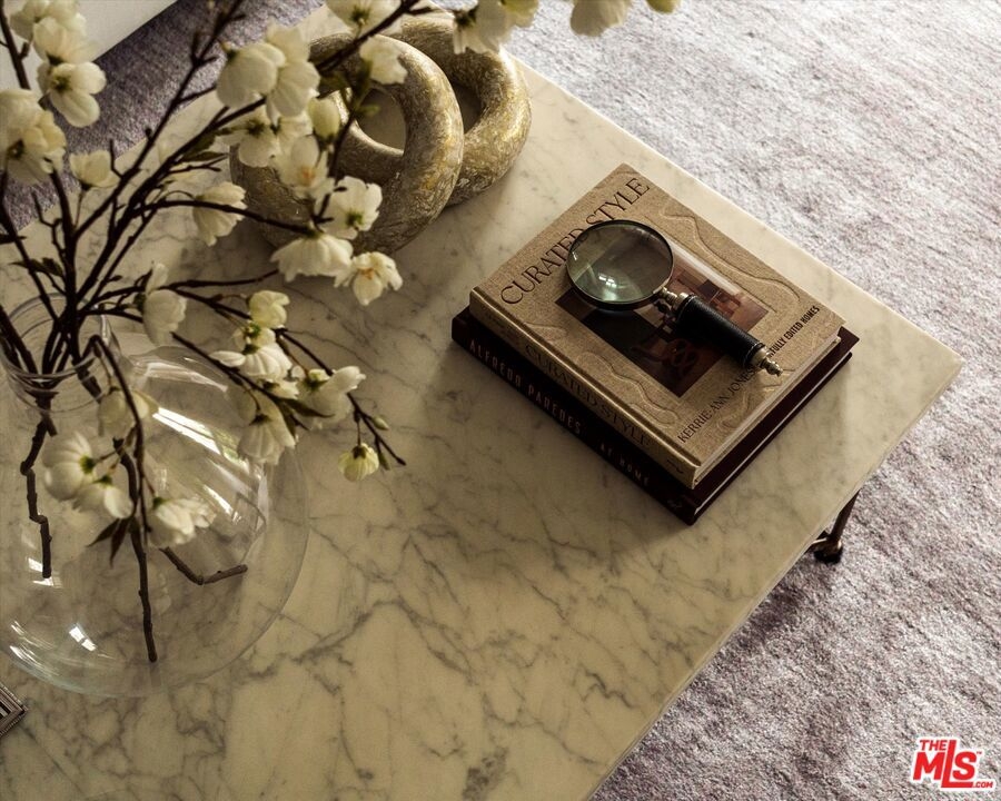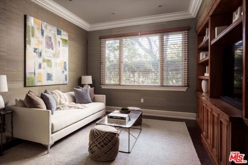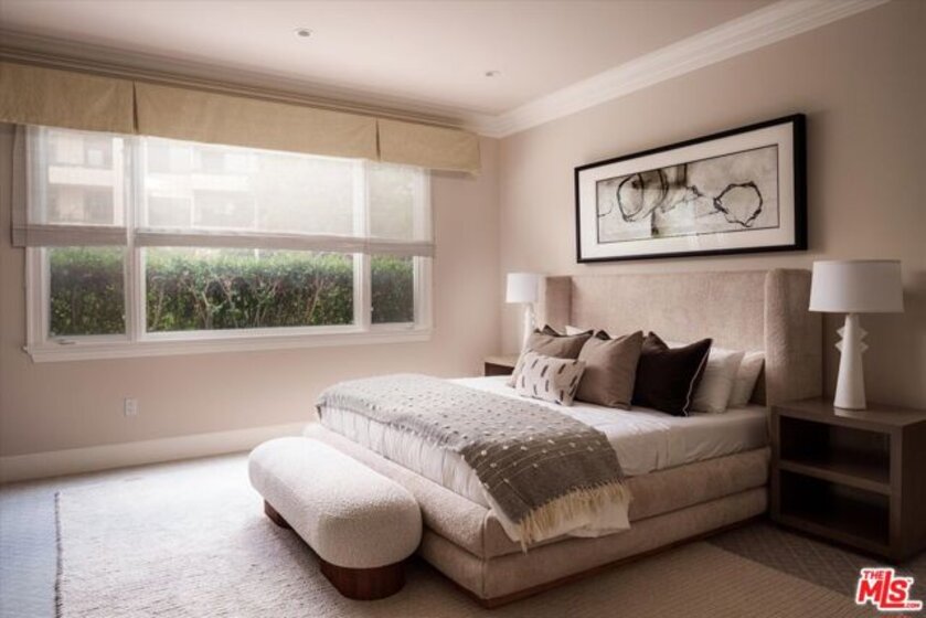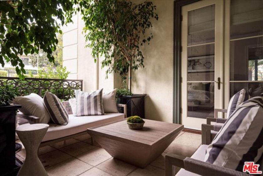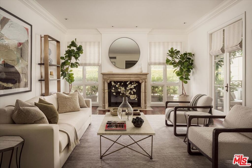 One of the premier residences in Century City's prestigious Le Parc community a beautifully updated and thoughtfully re-designed condominium offering exceptional craftsmanship, space, and privacy. This expansive 2-bedroom, 3-bath home is defined by clean architectural lines, high flat ceilings, and bespoke details throughout. Honed walnut floors run seamlessly through the main living areas, complementing the elegant custom moldings and recessed lighting found in every room. The formal living room is anchored by a fireplace with hand-carved French limestone mantle. The eat-in kitchen features marble countertops and backsplash, custom cabinetry, built-in marble topped desk, separate storage area, and direct access to the patio, creating an ideal space for everyday living and entertaining. A separate library is outfitted with built-in bookcases, offering a quiet retreat for reading or working from home. This could alternatively serve as a second bedroom with two closets and en-suite bath. The generously sized primary suite is a true sanctuary, with French doors leading to a landscaped balcony, dual walk-in closets with custom interiors, and a spacious marble-clad bath with soaking tub, dual vanities, and spa-style finishes. Additional highlights include a large in-unit storage closet, and excellent flow throughout the open-concept living and dining areas. Le Parc is a full-service, guard-gated community in the heart of Century City, offering resort-style amenities including two pools and spas, tennis courts, gym, and a clubhouse all just minutes from Beverly Hills, Westwood, and world-class dining and shopping.