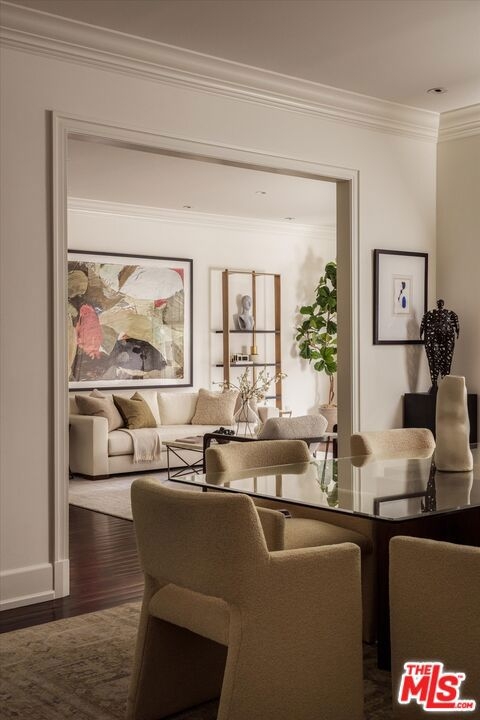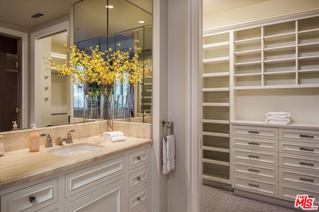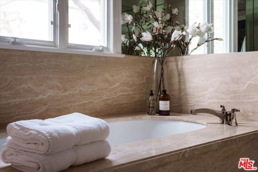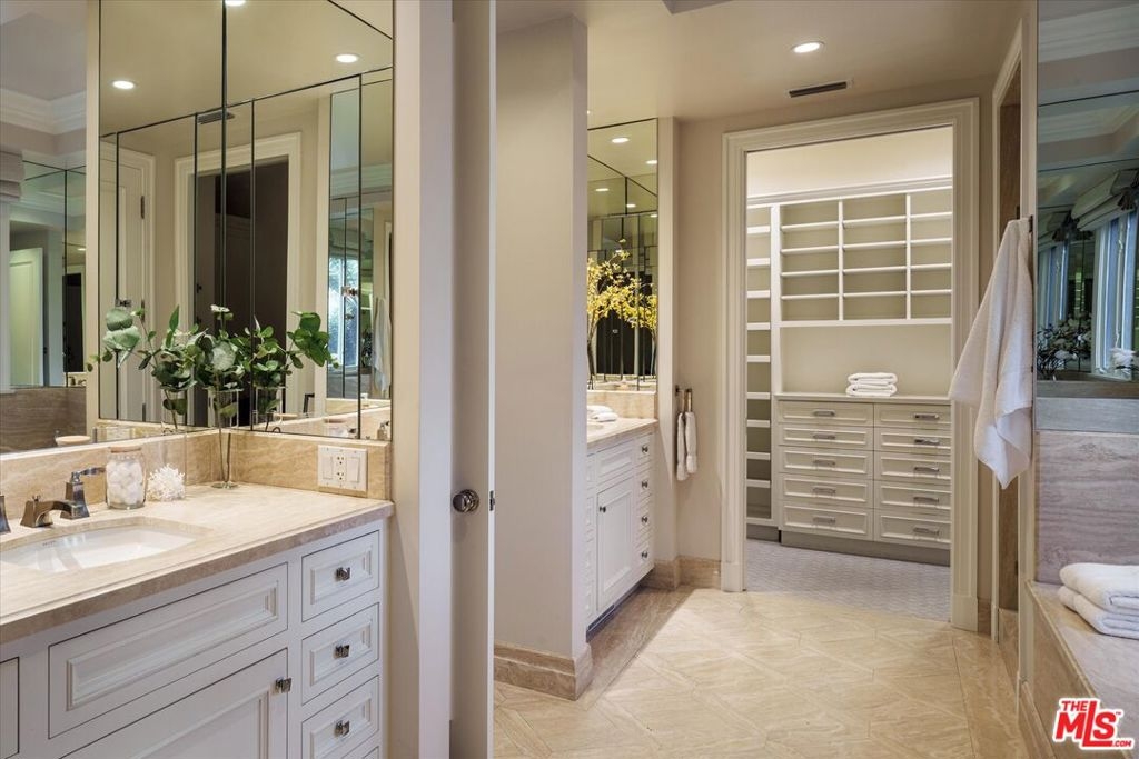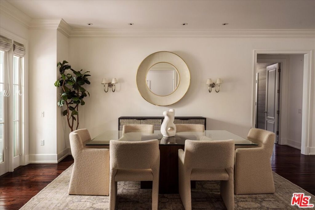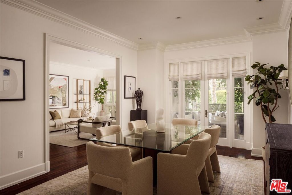 One of the premier residences in Century City's prestigious Le Parc community a beautifully updated and thoughtfully re-designed condominium offering exceptional craftsmanship, space, and privacy. This expansive 2-bedroom, 3-bath home is defined by clean architectural lines, high flat ceilings, and bespoke details throughout. Honed walnut floors run seamlessly through the main living areas, complementing the elegant custom moldings and recessed lighting found in every room. The formal living room is anchored by a fireplace with hand-carved French limestone mantle. The eat-in kitchen features marble countertops and backsplash, custom cabinetry, built-in marble topped desk, separate storage area, and direct access to the patio, creating an ideal space for everyday living and entertaining. A separate library is outfitted with built-in bookcases, offering a quiet retreat for reading or working from home. This could alternatively serve as a second bedroom with two closets and en-suite bath. The generously sized primary suite is a true sanctuary, with French doors leading to a landscaped balcony, dual walk-in closets with custom interiors, and a spacious marble-clad bath with soaking tub, dual vanities, and spa-style finishes. Additional highlights include a large in-unit storage closet, and excellent flow throughout the open-concept living and dining areas. Le Parc is a full-service, guard-gated community in the heart of Century City, offering resort-style amenities including two pools and spas, tennis courts, gym, and a clubhouse all just minutes from Beverly Hills, Westwood, and world-class dining and shopping.
