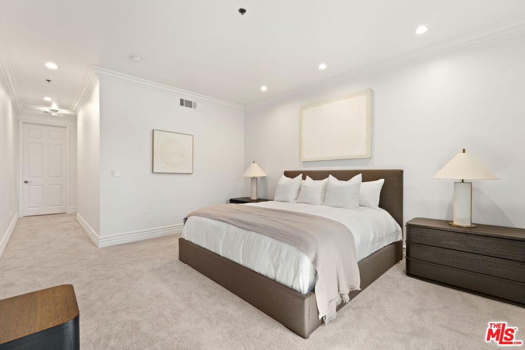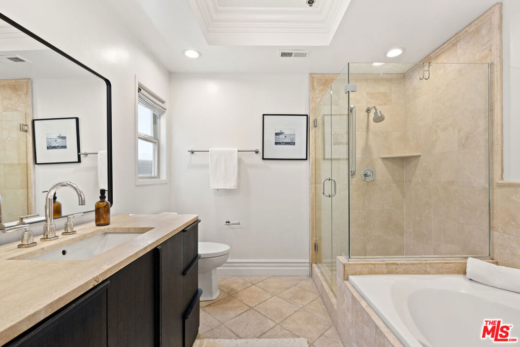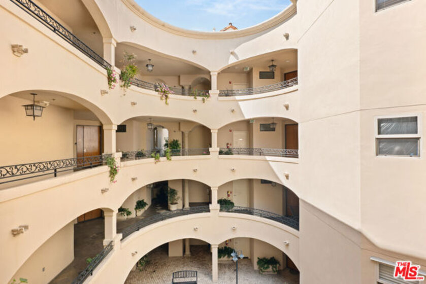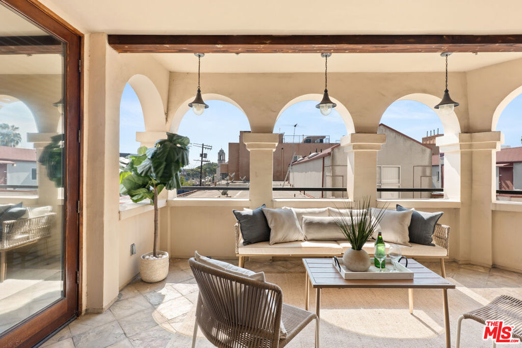 A rare corner residence in a beautifully maintained Mediterranean courtyard building, this fully renovated 2-bedroom, 2-bath + den condo blends timeless architecture with modern, move-in-ready living in a prime Century City adjacent location. Step through an elegant curved entry into a light-filled, open layout where expansive wood-framed windows and French doors create a seamless connection to the outdoors. The oversized covered balcony framed by classic arches and overlooking the city feels like a true extension of the home, ideal for morning coffee, relaxed evenings, or effortless entertaining. The interiors have been thoughtfully updated throughout, offering a clean, elevated aesthetic while maintaining warmth and character. The kitchen is designed for both everyday living and hosting, featuring stone countertops, stainless steel appliances, generous storage, and a large breakfast bar that opens naturally into the main living spaces. The primary suite is a private retreat with direct access to the terrace, a custom walk-in closet, and a spa-inspired bath complete with a soaking tub, separate shower, and beautiful natural light. The second bedroom is well-positioned for guests, a home office, or flex space, complemented by a stylishly updated bath.Additional features include in-unit laundry, recessed lighting, central comfort, and two side-by-side parking spaces. The building offers a tranquil courtyard with fountain, 2 underground tandem parking spots and guest parking. Ideally located just moments from Century City, Beverly Hills, Westwood, Rancho Park Golf Course, and Westfield Century City.