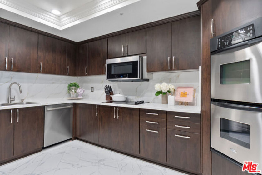 This refined 3-bedroom, 2.5-bath condominium at The Dorchester blends timeless elegance with modern comfort in one of Los Angeles' most iconic addresses. Positioned along the prestigious Wilshire Corridor known as "Millionaire's Mile" and bordered by Beverly Hills, Bel Air, and Holmby Hills the residence showcases sweeping city views through walls of glass that bathe every room in natural light. Inside, the open layout connects a graceful living area with a chef's kitchen appointed with sleek countertops and premium appliances. The primary suite offers a private sanctuary with a custom walk-in closet and spa-like bath featuring dual vanities, a soaking tub, and glass-enclosed shower. Two additional bedrooms provide flexibility for guests or a home office, each enhanced with motorized blinds for effortless convenience. Upgrades such as Versailles Fontainebleau parquet floors, fresh designer paint, crown molding, LED lighting, Kohler fixtures, wood shutters, and an updated kitchen further elevate the home. A dedicated laundry room completes the thoughtful interior. The Dorchester offers full-service luxury with 24/7 staffing, valet parking for residents and guests, concierge services, and exclusive amenities including a rooftop pool with panoramic views, a sauna, fitness center, and meeting facilities. Just minutes from Beverly Hills and Century City, the residence provides unmatched access to world-class dining, shopping, and culture. Experience the best of elevated city living, schedule your private showing today.