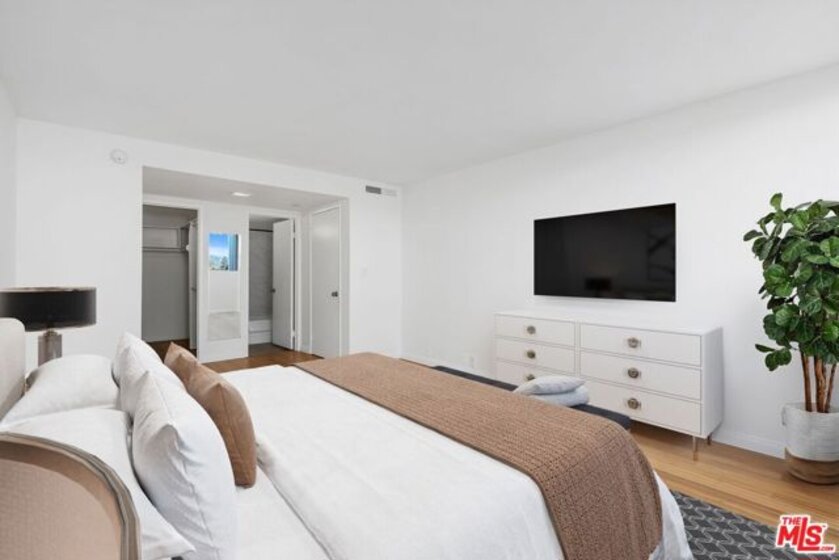 This amazing end of year DEAL at the Wilshire Marquis Awaits You! This stylish and spacious CORNER 2-bedroom, 2-bath residence offers a luxurious lifestyle on the prestigious Wilshire Corridor. Upon entering through rich, dark-wood double entry doors, you are greeted by gleaming bamboo flooring throughout, a grand open-concept living room showcasing magnificent panoramic views and picturesque north-facing vistas of Bel Air and Holmby Hills, all enjoyed from the kitchen, living room, private outdoor balcony, and bedrooms. The thoughtful open concept layout with includes a convenient breakfast bar, and wet bar perfect for entertaining. The expansive primary suite includes a vanity area, walk-in closet, and ensuite bath, creating a private sanctuary. The second spacious bedroom features built in book shelving. Additional highlights include a spacious foyer, and in-unit washer/dryer. The Wilshire Marquis features 24-hour door/concierge service, private parking for residents and guests, three tennis courts, two of them on the roof with spectacular roof deck tennis court views, a heated pool and spa, fitness center, sauna, community room, and EV charging stations. Located in the heart of Westwood, this 9th floor corner units with amazing views is perfectly positioned in close proximity to Westwood Village, UCLA, the 405 freeway, and is Bel Air and Beverly Hills adjacent. All interior photos digitally staged.