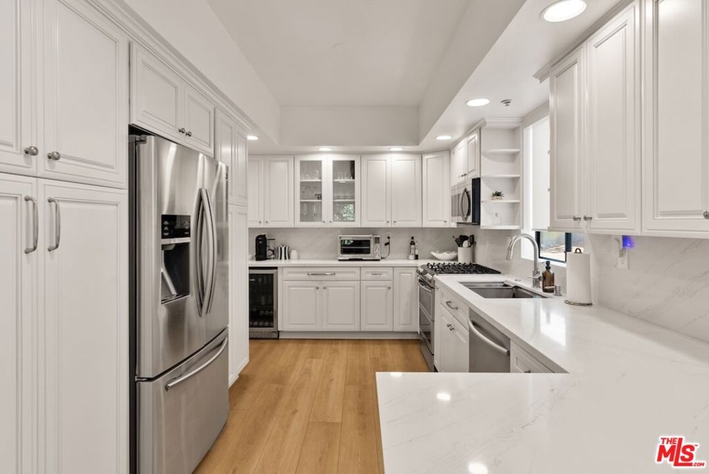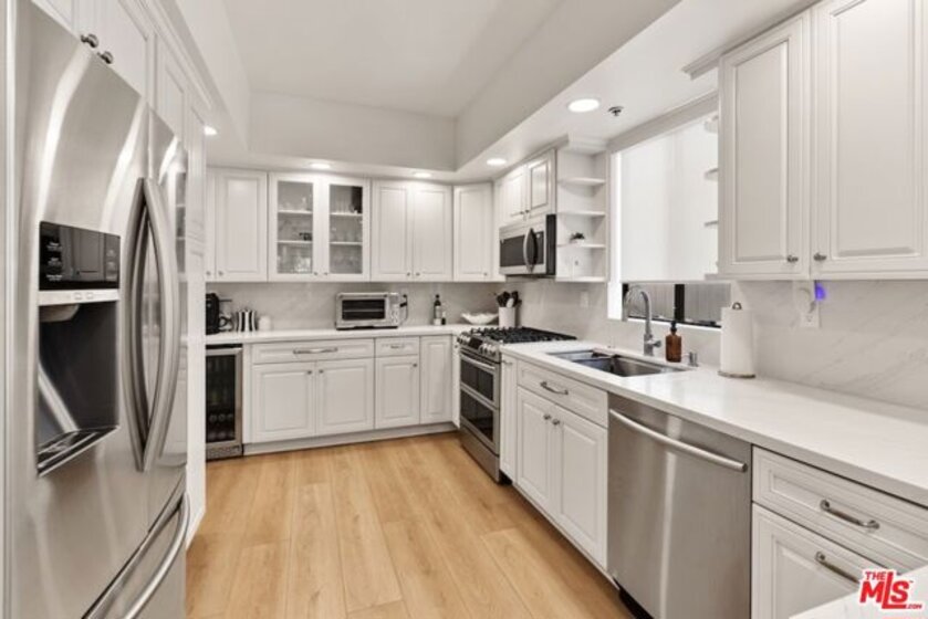Prime Westwood Living at Its Finest. This very Rare 3-Bedroom completely remodeled unit in the most Prime location in the heart of Westwood, right between Beverly Hills and Santa Monica, this sun-drenched residence epitomizes the essence of California living. This amazing 3-bedroom split-level unit which is one the 2nd floor features a large beautiful living room with fireplace and treetop views, custom flooring, beautiful Brand New Chefs gourmet Kitchen boasting sleek quartz countertops, recessed lights & very open layout that is light and bright which invites all the natural light to flood the amazing living spaces, custom cabinetry, and top-of-the-line stainless-steel appliances. Primary bedroom & Second bedroom has soaring ceilings ,walk-in closet, and opens to a private balcony ideal place to unwind and chill out. Indulge in the impressive master bath, featuring dual vanities, a Huge separate shower with two separate shower heads which feels like a true retreat. Second bath is also fully custom with designer tiles and beautiful quartz counters . This unit also features rare in-unit laundry and newer central heating and cooling system as well as newer water heater and more. This Beautiful unit also has a separate stainless wine closet to store your best bottles of Vino. Steps to Fairburn Elementary school and just minutes from Westfield Century City Mall, Javiers, Movie Theater ,UCLA, and Westwood Village. Don't miss out on this exceptional opportunity to call Westwood home!