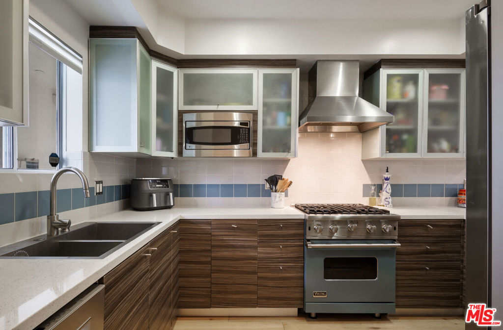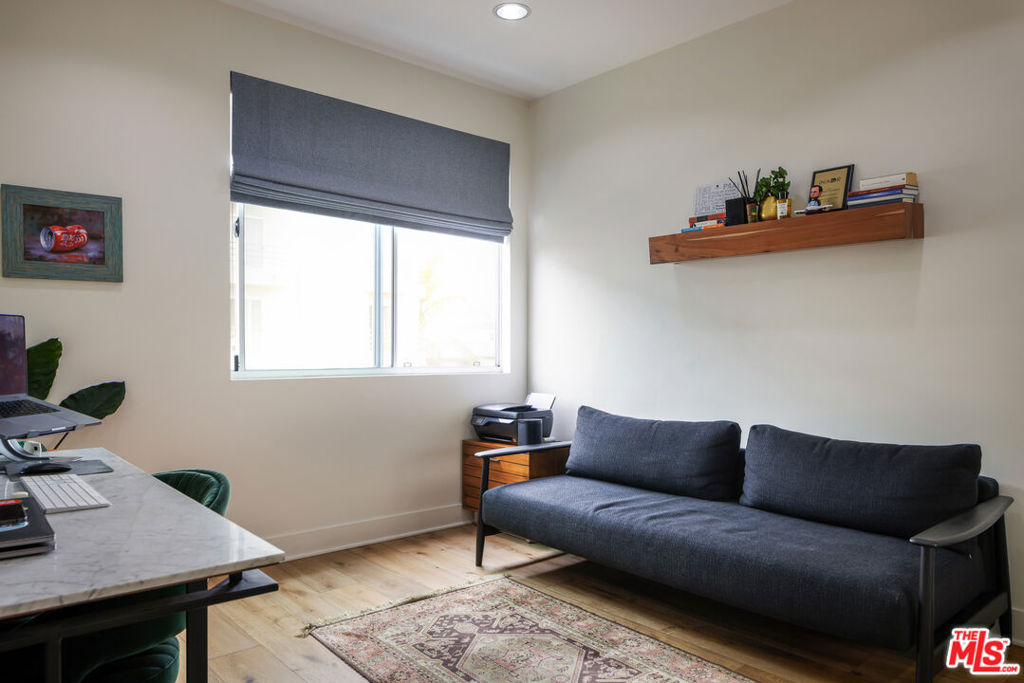 DON'T MISS OUT ON THIS INCREDIBLE TOWNHOUSE WITH ROOFTOP! Luxury 3-bedroom, 2.5-bath townhouse with a cozy terrace, bonus room, and expansive rooftop, built in 2011. Situated in a modern 6-unit contemporary building in the heart of Beverly Grove, this home boasts an exceptional Walk Score of 94. Just steps from iconic 3rd Street and surrounded by Los Angeles' best restaurants, cafes, grocery stores, nightlife, and museums, it offers the perfect balance of urban convenience and modern living no car needed for most daily errands. This 3BR + bonus room, 2.5BA residence showcases modern luxury, high-end amenities, and timeless charm. The open floor plan features wide-plank oak hardwood floors and a cozy bar/den area ideal for entertaining, seamlessly blending contemporary design with everyday comfort. The open-concept kitchen is appointed with stainless steel appliances, a Viking range, upgraded Bosch dishwasher, quartz countertops, and a breakfast bar that flows into the dining and living areas. Upstairs, all three bedrooms provide privacy and comfort, with a full-size washer and dryer conveniently located on the same level. The primary suite features soaring 20-foot ceilings with stunning hill views, a walk-in closet, and a spa-like bathroom complete with a soaking tub, walk-in shower, and dual vanity. The top floor offers a versatile loft space perfect for a home office leading to an expansive 500+ sq ft private rooftop deck with string lights, a gas fire pit, an outdoor movie theater with high-definition projector, and breathtaking views of the Hollywood Hills. Additional highlights include a brand-new tankless water heater system (2024), recently updated flooring, modern LED lighting, dedicated security cameras, custom high-end fabric shades, two dedicated parking spaces in a secure gated garage, and guest parking.NOTE: Property is not fully furnished; some basic furniture is available. All offers must be submitted by February 22 at 11:59 PM. HOA dues are $494 per month.