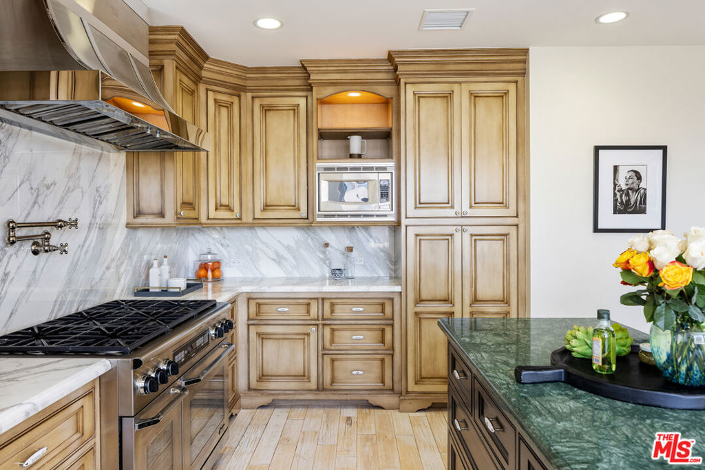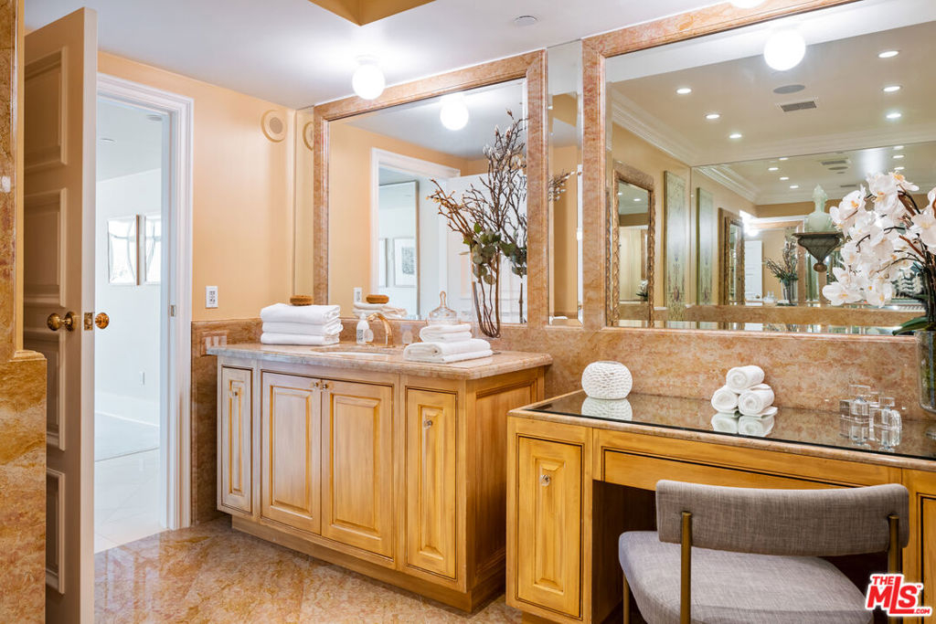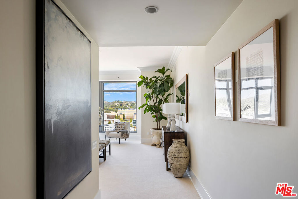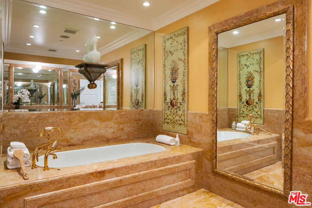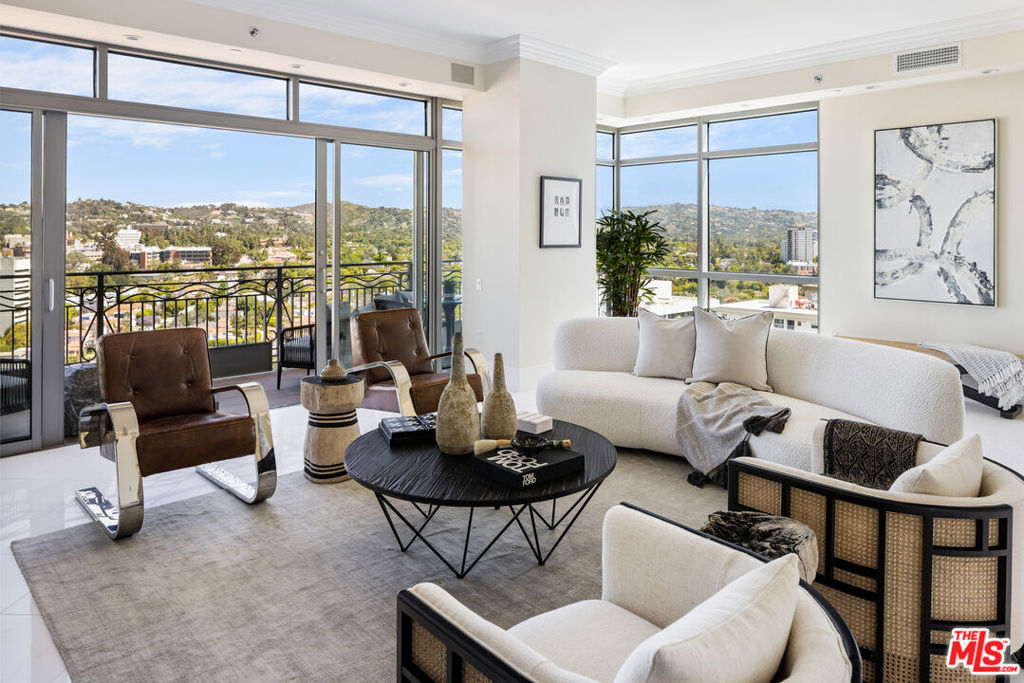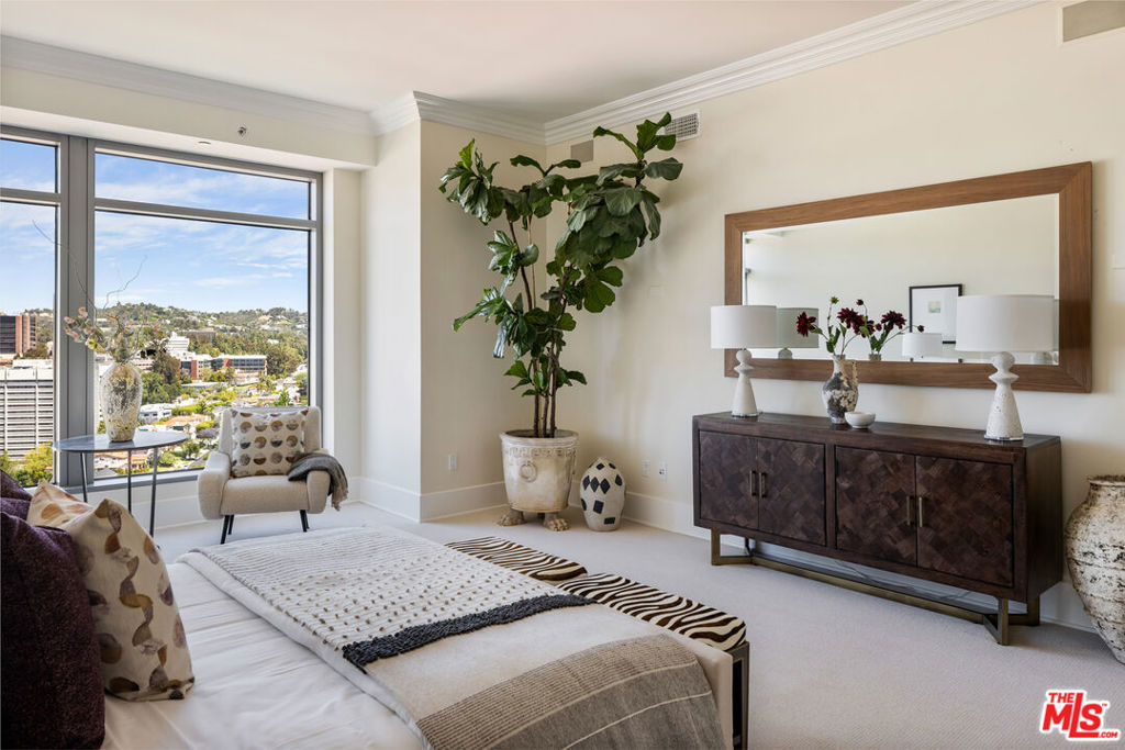 Rare high floor NE unit in the undisputed champion of the Wilshire corridor: The Californian. Designed with touches of Art Deco, nothing comes close to the grand yet refined comforts of this building. Accessed through private elevator, this sky home is flooded with light and surrounded by jaw dropping views. Marbled living room and dining features large fireplace and sweeping vistas of Los Angeles, from its floor to ceiling windows and large sitting balcony. Cook's French country inspired kitchen w/professional appliances, plentiful storage, farmhouse apron sink and centre island w/drop down bar for seated dining. Large primary suite w/ 2 walk in closets, luxurious hotel bath w/ sitting vanity, walk in shower, tub and toto washlet. This home also features 2nd bedroom w/en-suite bath, powder room, and laundry room w/separate service entrance. Every amenity is provided in this total full service building including state of the art fitness centre, pool w/separate spa area, outdoor fireplace lounge, dog walk, wine storage, 24 hour valet/security. The pinnacle of elegance.