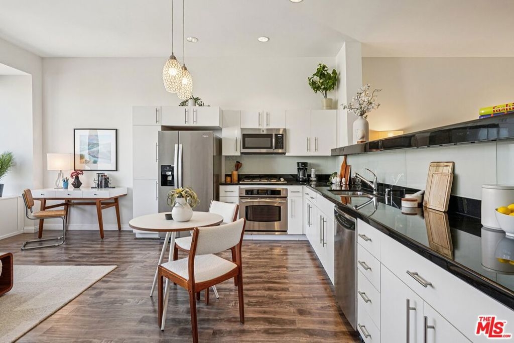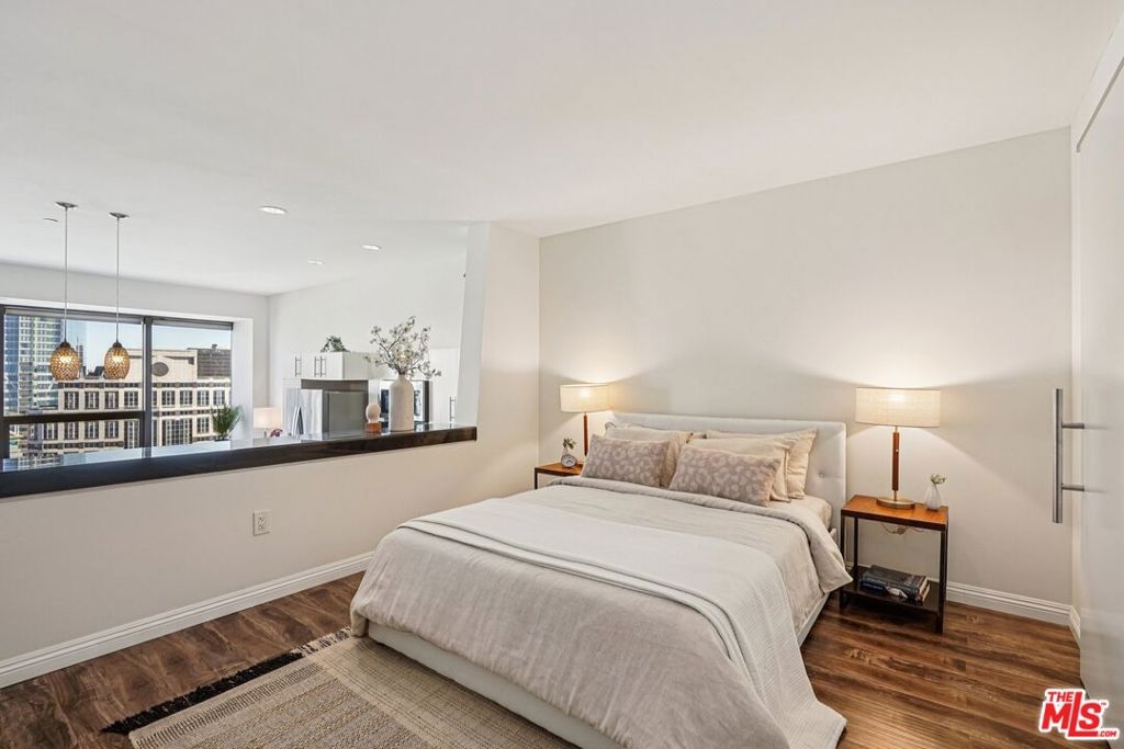 Residence #2209 captures a rare balance in Downtown LA. Expansive, light-filled living paired with a calm, curated aesthetic. A full wall of windows frames sweeping skyline views, bringing the city in while maintaining a sense of privacy above it all. Just beneath, a cleverly concealed window seat offers both additional storage and a quiet perch to take in the view. The open-concept layout flows effortlessly from living to dining to kitchen, anchored by warm wood flooring and softened by thoughtful staging that highlights both comfort and scale. The kitchen is sleek and functional, featuring stainless steel appliances, black stone counters, and clean-lined cabinetry that blends seamlessly into the living space. The bedroom retreat offers a quiet separation with a soft, elevated feel. Clean lines, neutral tones, and layered textures create a home that feels both modern and inviting. Ideally positioned at the intersection of Downtown's Financial District and South Park, you're moments from Whole Foods, LA Live, restaurants, coffee spots, and the pulse of city living. Residents enjoy one of Downtown's most iconic addresses, known for its dramatic architecture and resort-style amenities. Imagine a 17th-floor pool deck with a spa, cabanas, an outdoor dining area, BBQ grills, and a pet park, all offering panoramic views of Los Angeles and beyond. A home that feels intentional, effortless, and distinctly above it all awaits you.