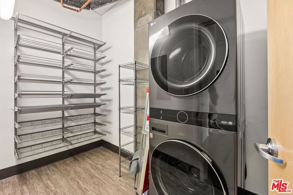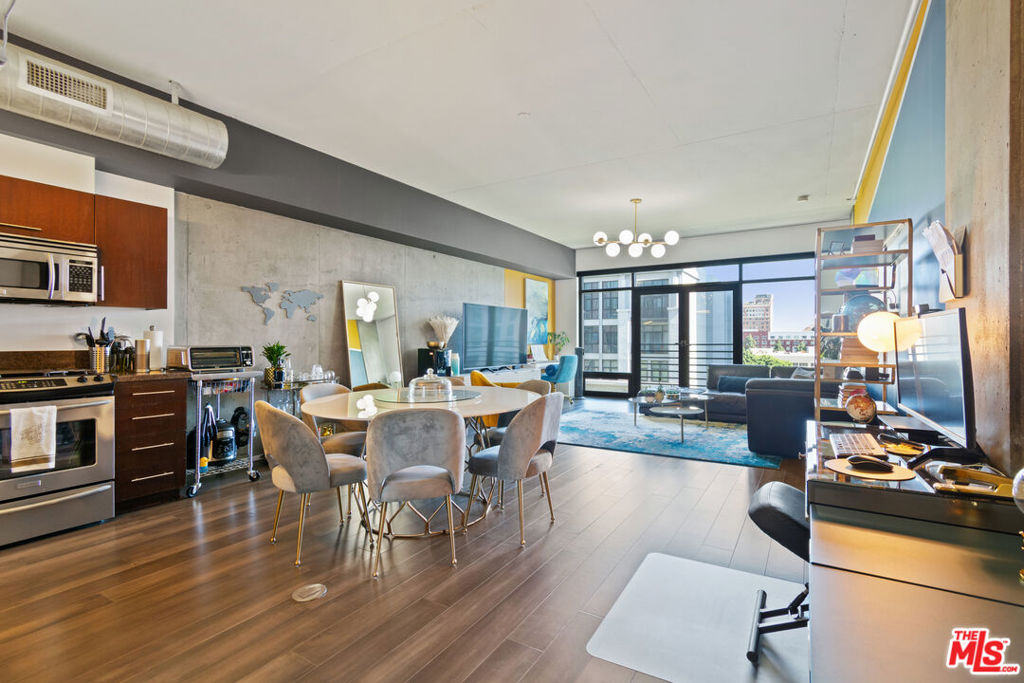 Step into one of the largest and most livable one-bedroom, one-and-a-half-bath residences at Elleven in the heart of DTLA's Social District. This thoughtfully upgraded home is designed for modern city living and truly stands apart. Highlights include: Custom walk-in primary closet with built-in shelving and mood lighting, a dedicated storage unit conveniently located next to your parking space, an EV charger installed at your assigned parking spot, a newer 3-year-old A/C system, and a full-size, vented washer and dryer. The wide-open floor plan features soaring ceilings, engineered maple hardwood floors, and expansive east-facing windows with a Juliet balcony offering open park and city views. Overlooking South Park Commons, your sightline extends across greenery and open space not directly into a neighboring building creating rare privacy and a true sense of openness in the heart of downtown. The spacious kitchen flows seamlessly into the oversized living area, ideal for entertaining or relaxing at home. Both bathrooms have been tastefully updated, blending comfort and style. The Elleven Bldg offers full-service amenities including: 24-hour front desk and security, on-site management, expansive 4th-floor terrace with pool and spa, Viking BBQs, fire pit, and multiple lounge areas. Just steps from: Crypto.com Arena, L.A. Live, Whole Foods Market, the weekly farmers market, and some of DTLA's top restaurants. Convenient access to Pico Metro, USC, and major upcoming global events including the 2026 World Cup, 2027 Super Bowl, and 2028 Olympics. Don't miss out! Ask about available Buyer incentives.