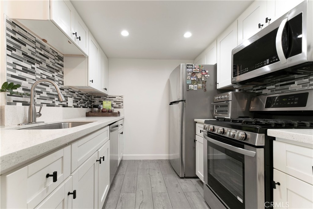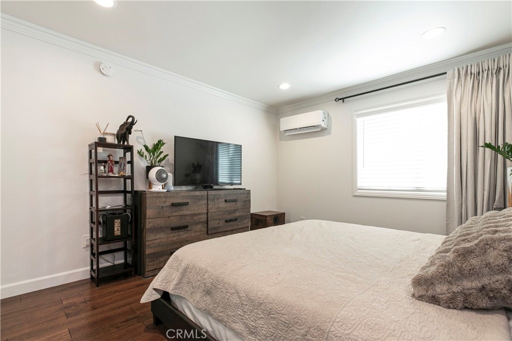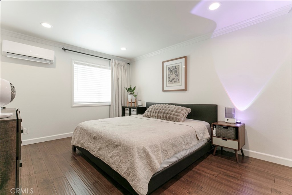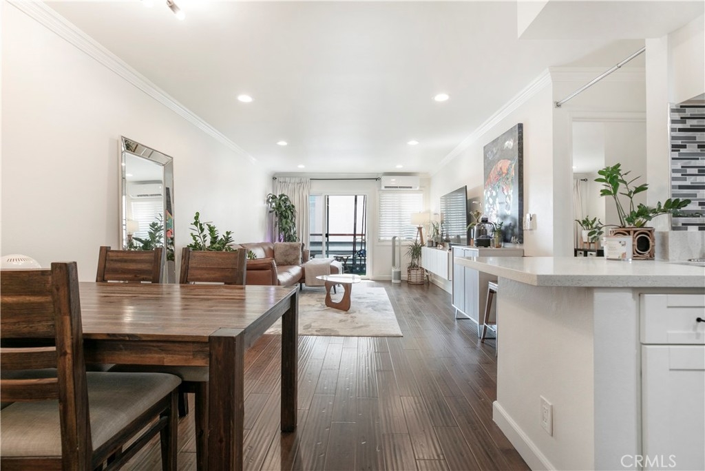 Modern move in ready situated in the heart of DTLA. This spacious 1 bed 1 ba condo offers updated kitchen cabinets, quartz countertops & stainless steel appliances. Recessed lights & crown moldings. Individual split type air condition in the livingroom & bedroom. In addition, refrigerator, washer, dryer, floating cabinet in the livingroom are included in the sale. Amenities include secured parking garage, swimming pool, bbq area. Close to LA Live, restaurants, shops & easy access to major freeways. Come and see it. You don't want to miss this well tailored condo.