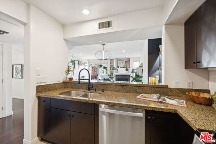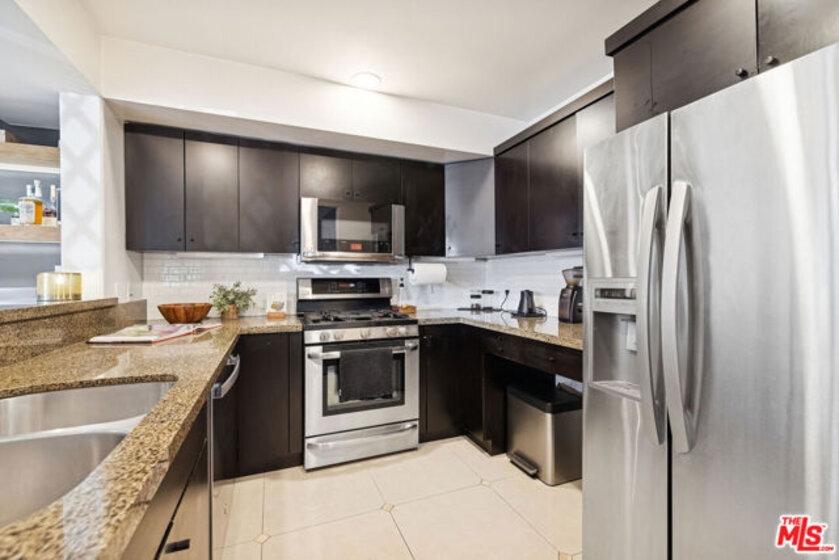 Welcome to this stylish end unit with a large patio, plus an additonal balcony. One of only 16 units in a well-kept, modern building. This 2-bedroom, 2-bath home offers an open and functional layout perfect for modern living, with the kitchen featuring granite countertops and flowing seamlessly into the dining area and spacious living room, complete with hardwood flooring throughout. Enjoy a cozy evening by the fireplace or relax on the airy private balcony. The primary suite includes a large walk-in closet and large en-suite bathroom. The second bedroom has custom cabinetry for the perfect office. Additional highlights include a tankless water heater, smart thermostat, hue lighting system, intercom system, and in-unit side-by-side washer and dryer. This home also offers two assigned tandem parking spaces within a secure, gated garage. Conveniently located near the Galleria Mall and the vibrant dining and entertainment options of Koreatown, with easy access to Downtown Los Angeles.
