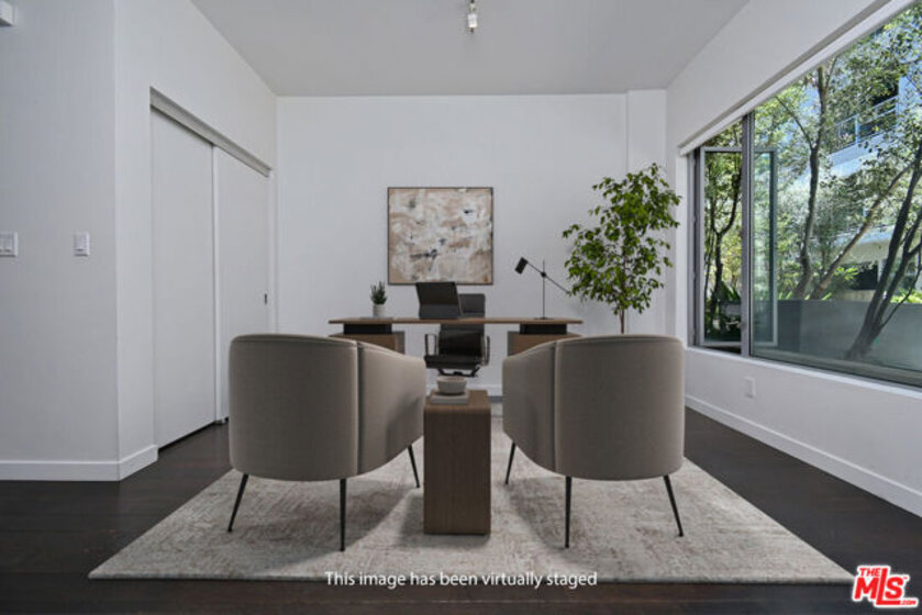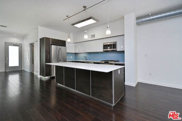 Modern West LA Living at It's Finest! This rare end-unit at T-Lofts delivers the ultimate in contemporary West LA loft living! Featuring soaring ceilings and expansive walls of windows, this two-story, 2-bedroom, 3-bath residence is bathed in natural light throughout. The open-concept design seamlessly connects the chef's kitchen to a spacious private patio with an electric roll-up door, creating an effortless indoor-outdoor flow ideal for entertaining or relaxing.The gourmet kitchen is appointed with beautiful cabinetry, Caesarstone countertops, stainless steel appliances, and a large center island. A versatile den on the main level offers the perfect home office or creative space. Upstairs, two bright bedrooms provide privacy and separation. The loft-style primary suite features a spa-inspired bathroom with double sinks, separate shower and tub, and a generous walk-in closet, while the secondary bedroom also includes an en-suite bath. Additional highlights include a main-level bathroom,, in-unit laundry, hardwood floors, recessed lighting, and numerous custom upgrades. Within the secured, beautifully landscaped, and eco-conscious community, residents enjoy resort-style amenities such as a hot tub with outdoor shower, BBQ area, fitness center, multiple outdoor seating areas, and package lockers, along with two side-by-side parking spaces, guest parking, EV chargers, and bike racks. Perfectly located in the heart of Sawtelle, this home offers unmatched access to LA's premier dining, shopping, and beachesthe perfect blend of modern design, luxury finishes, and effortless urban convenience.