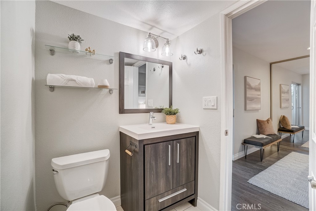 Proud to introduce this charming 2 bedroom/2 bathroom West Los Angeles single level condo unit. As you enter, be amazed by the large living room window that produces an abundance of natural light. Experience the luxury vinyl plan throughout much of the unit with recessed lighting for the partial open concept floor plan. The kitchen has quartz counters, stainless steel appliances, modern white cabinetry and counter space to station bar stools. 2 spacious bedrooms that each have floor to the ceiling closets with organizers and sliding glass doors that go out to the extended balcony for a great indoor/outdoor feel. The primary bedroom consists of a primary en suite bathroom with modern vanity. Some highlighted features also include a brick style contemporary gas fireplace, smart device Honeywell thermostat, central air and heat and 2 parking spaces with storage area!!! The location of the unit is ideal as you are just 2 blocks north of Santa Monica Blvd and easy access to shopping, restaurants, 405 freeway, the beach and ample other westside wonders to enjoy!