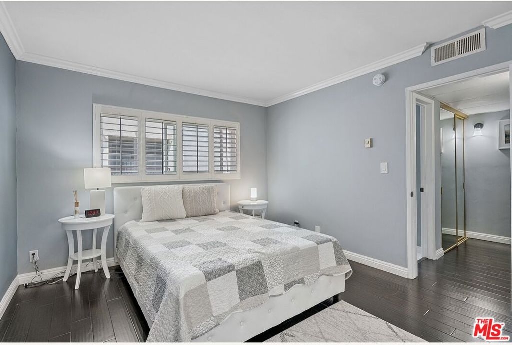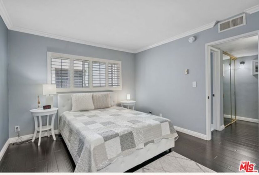 Don't be shy - What an opportunity in a fantastic Brentwood Location. 1BR/BA condo on the 4th floor - located on a quiet cul de sac with low HOA dues. Features including: new HVAC and dual-pane windows. An Updated bright unit with an open floor plan: spacious dining/living room and gas-burning fireplace. The kitchen boasts stainless steel appliances, custom cabinetry and a breakfast bar. A generous primary bedroom and updated full bath. Other features include plantation shutters, crown molding, and three closets for tons of storage space. Building offers rooftop sundeck, community laundry and secure gated garage with one assigned parking space. Offered furnished or unfurnished. HOA dues include water, gas and earthquake insurance. No pet restrictions. Close to shops, dining, Whole Foods and Barrington Park - a true Westside gem! Great investment or owner user!