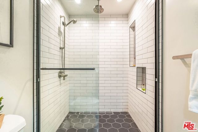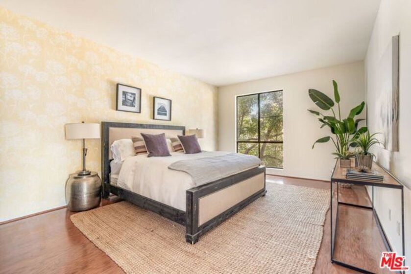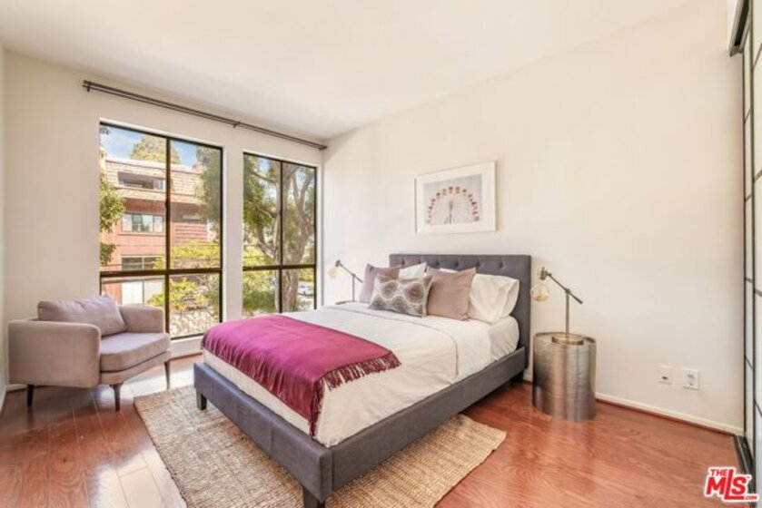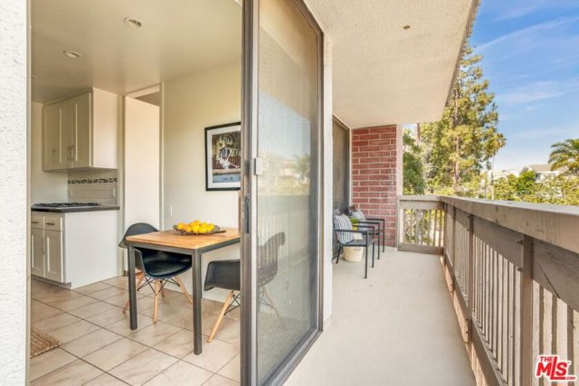 Experience the best of Westside living in this light-filled corner-unit condo nestled in the heart of Brentwood. Designed for both style and comfort, this two-bedroom, two-bathroom residence boasts a thoughtfully remodeled interior with refined finishes throughout. An airy, open-concept floor plan is enhanced by warm wood floors and abundant natural light streaming through expansive windows. The spacious living room features a stone fireplace, a wet bar for effortless entertaining, and access to a covered balcony -- ideal for morning coffee or evening wine. The dining area flows seamlessly into the kitchen, where bright white cabinetry and tiled backsplash contrast against dark stone countertops. Stylish as it is functional, the kitchen includes a pantry, stainless steel appliances, and a charming breakfast nook. Two generously-sized bedrooms act as private retreats, with the primary suite featuring two walk-in closets and a spa-inspired ensuite bathroom with dual vanities, a tiled shower with a rainhead faucet, and a separate soaking tub. The second full bathroom has also been remodeled with modern finishes, and an in-unit laundry room adds everyday convenience. Residents enjoy the benefits of a controlled-access building with secure garage parking, including two assigned spaces for the unit. Ideally situated near popular dining and shopping along San Vicente and Wilshire Boulevards, top-rated schools, the Brentwood Country Mart, and just a short drive to the beach, this home combines modern updates and unmatched convenience in one of the Westside's most sought-after neighborhoods.