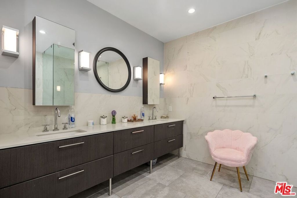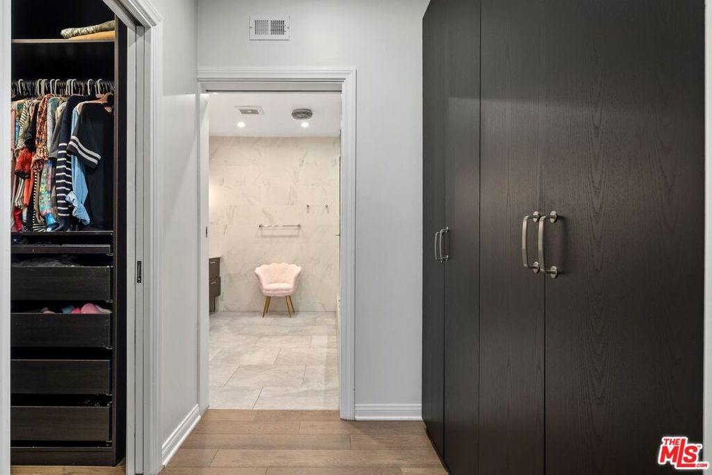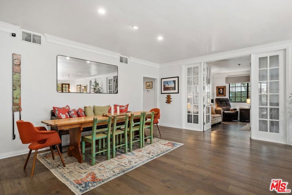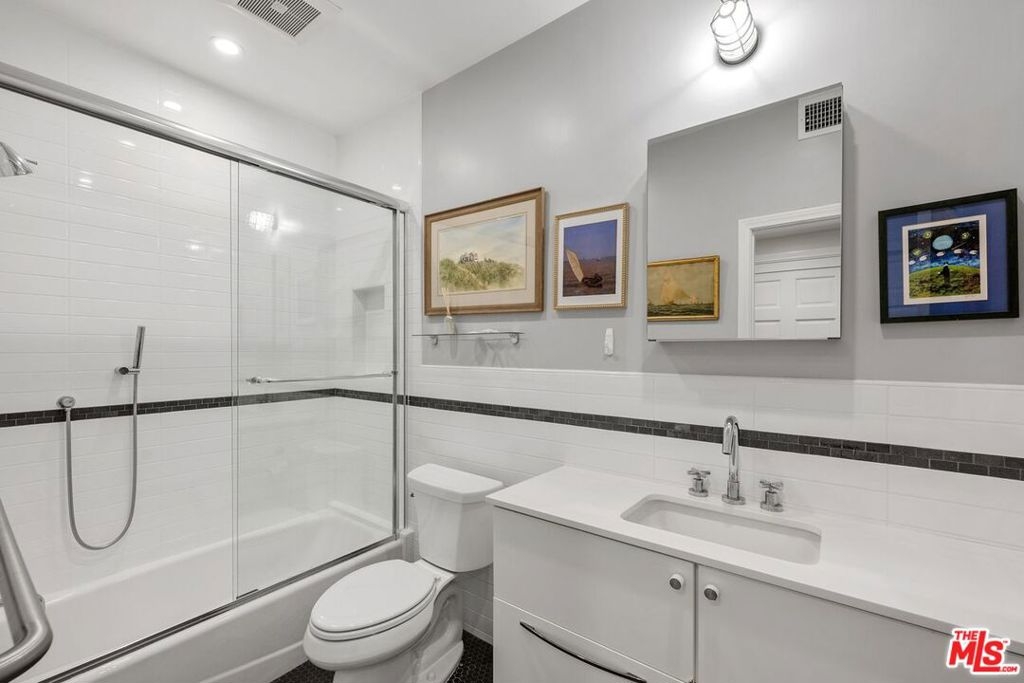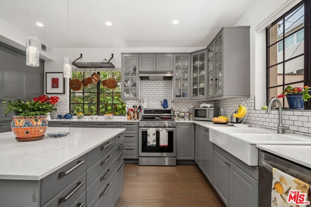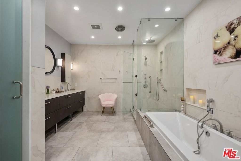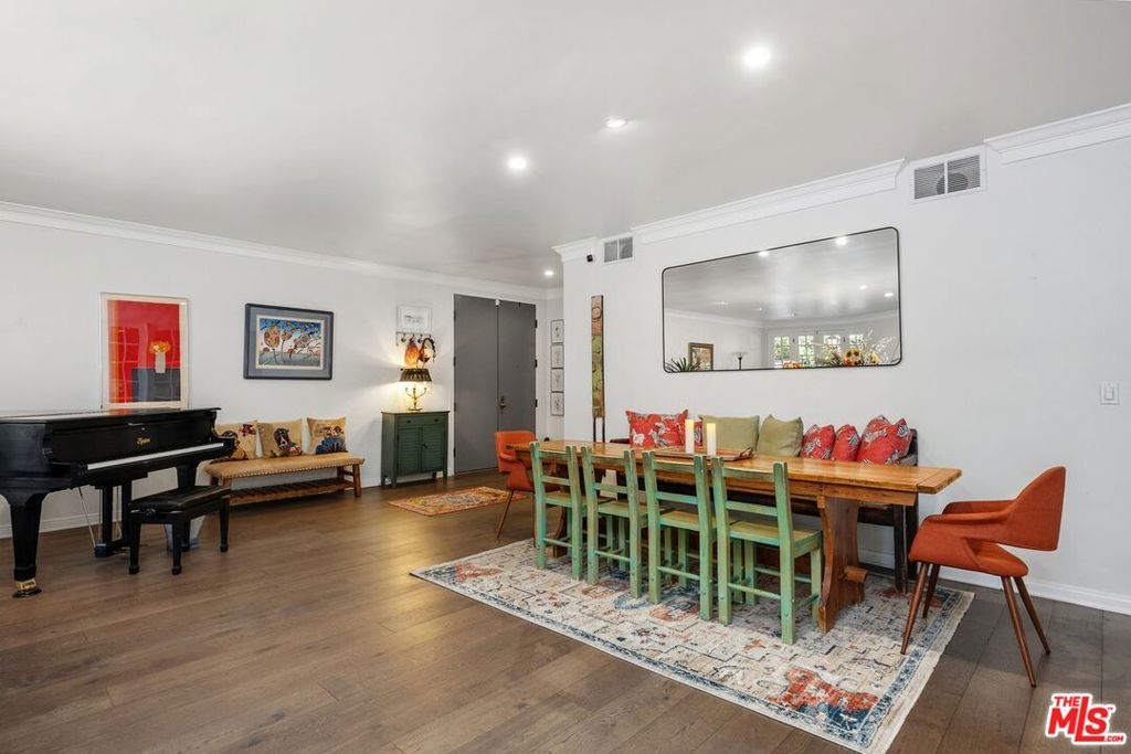 Discover this spacious, single-level home in the heart of Brentwood . . This 2 (+ 3rd bed / office - with closet) bedroom, 2.5 bath, 2300+/- sq foot corner unit boasts generous room sizes, custom Roman Shades, nearly 9-foot ceilings, wide-plank, wood floors and dimmable recessed lighting throughout. . . just steps to the many shops & restaurants of Brentwood Village. Come in through the elegant double-door entry. Everything in this unit is on a grand scale and feels like a single family home. The enormous living/country dining room has a working fireplace, plenty of room for a grand piano and opens to a spacious, private patio (with brand new flooring) with lots of room for several seating areas. The extra-large cooks kitchen features glass-front cabinetry, a breakfast bar, built-in wine rack, stainless appliances (including an LG ThinQ smart refrigerator and LG dishwasher, new circa 2023), farmhouse double sink, center island, windows facing two directions, under-cabinet lighting and seeming endless storage. Huge primary suite includes a ceiling fan, custom closet with jewelry drawers. Sumptuous bath with dual sinks, a separate soaking tub with wide surround (perfect for candles) & over-size, frameless shower enclosure with body-washer. Good size secondary bedroom with an entire wall of closets. Third bedroom/office with built-ins and closet. Good size laundry room with generous storage and shelving. Huge linen closet in hallway. This building was built as condos. Building garage is at street level. No stairs from garage to elevator to unit floor . . . . Please see "Doc(s)" link (above) for additional HOA information. Please see the "Virtual Tour" link (above) for the self-directed, 3-D virtual tour.