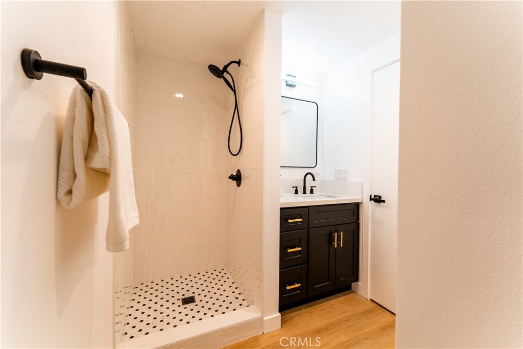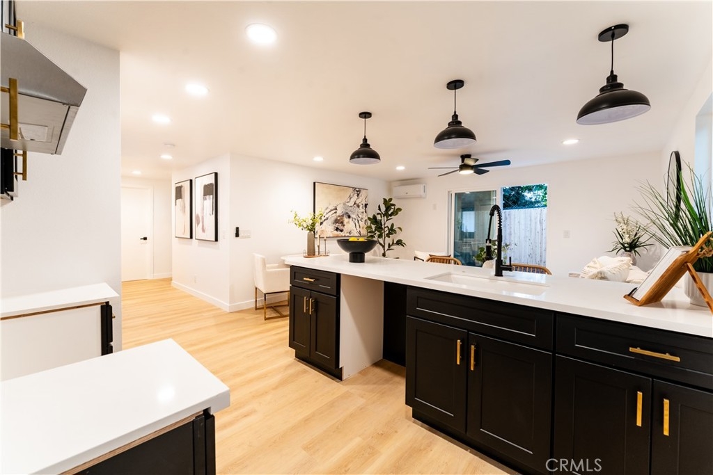 Stunning, fully renovated 2-bedroom, 2-bathroom TIC in Mid-Wilshire Los Angeles. This beautifully reimagined unit features an open-concept layout with a spacious living area, wide-plank flooring, and designer finishes throughout. The kitchen offers custom black cabinetry, quartz countertops, statement pendant lighting, a large island with seating, and a bold patterned backsplash that sets the tone for the space. Both bedrooms enjoy great natural light, while the modern bath features sleek tilework and matte black fixtures. Thoughtful updates continue with new mini-split systems, dual-pane windows, in-unit laundry hookups, and direct access to the shared outdoor space. Parking included (in shared driveway/lot). This home is offered as a TIC (Tenants-In-Common), one of four newly renovated units within the property. TIC ownership provides an attainable way to buy into a fully upgraded building. A fresh, modern living space with the perfect blend of style, comfort, and value.