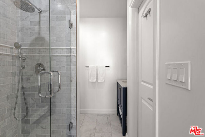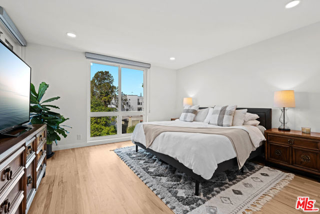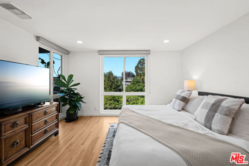 Stunning Top-Floor Corner Condo with Panoramic Views in Prime Brentwood! Discover this gorgeous front-facing 2-bedroom, 2.5-bathroom condo spanning 1,403 sq ft, perfectly positioned on the top floor of a beautifully maintained building in the heart of Brentwood. From the moment you enter through the stylish double doors, you're welcomed into a bright, inviting foyer that sets the tone for the elegance found throughout the home. Enjoy unobstructed treetop views that stretch to the mountains, filling the space with natural light and creating a serene and inspiring atmosphere for everyday living. Every inch of this residence has been thoughtfully updated with impeccable taste, showcasing beautifully refinished hardwood flooring, luxurious marble bathroom tiles, quartz countertops, newer kitchen appliances, gorgeous modern cabinets with under-cabinet lighting, a stylish wet bar with built-in wine fridge, recessed lighting, and custom window treatments. The spacious primary bedroom is a peaceful retreat with abundant windows showcasing the inspiring vistas, along with a beautifully updated en-suite bathroom and a generous walk-in closet. The cozy living room offers a comfortable space to unwind, complete with a fireplace for chilly evenings and direct access to your private balcony, perfect for morning coffee, sunset views, evening wine, or simply soaking in the scenery. A chic wet bar with wine fridge enhances the home's entertaining appeal. The fully equipped kitchen offers everything you need for effortless cooking and hosting. Additional highlights include an in-unit washer and dryer, newer HVAC and ducting, an upgraded electrical panel, double-pane windows, two-car parking with a private EV wall charger, secure building access, and unbeatable proximity to Brentwood's fabulous shops, restaurants, and neighborhood conveniences. Experience elevated living, exceptional style, and breathtaking views in this truly remarkable condo that captures the very best of the Brentwood lifestyle!