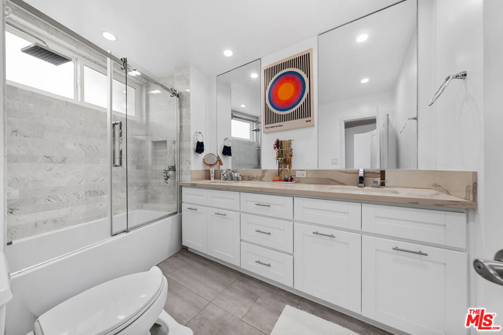 Sunlight pours into this spectacular, fully remodeled 3 bedroom, 3 bath condo in the heart of Brentwood. Rare for the area, this single level unit offers nearly 1,700 square feet of stylish living with an open layout that feels bright and inviting. A formal entry leads into the main living and dining areas, with wide plank light wood floors, recessed lighting, and a gas fireplace with elegant marble surround. Floor to ceiling sliding doors and walls of glass open to three generous balconies, creating great indoor outdoor flow and leafy treetop views down Montana Avenue. The redesigned kitchen features crisp white quartz countertops, modern cabinetry, and stainless steel appliances perfect for the home chef and entertaining. Each of the three bedrooms has its own updated bath, offering comfort and privacy throughout. The primary suite stands out with a walk in closet and ensuite bath. Set in Villa Montana, a mid century building designed by architect Jack Chernoff, AIA, the property includes access to resort style amenities like a heated pool, dry sauna, and a well equipped gym. Includes two tandem parking spaces in a secure garage and private storage. HOA dues cover water, gas, and earthquake insurance. Unbeatable location across from the Sunday farmers market and moments from top rated schools, parks, and the best shops and restaurants along San Vicente and Montana. A rare turnkey offering in one of West LA's most desirable neighborhoods.