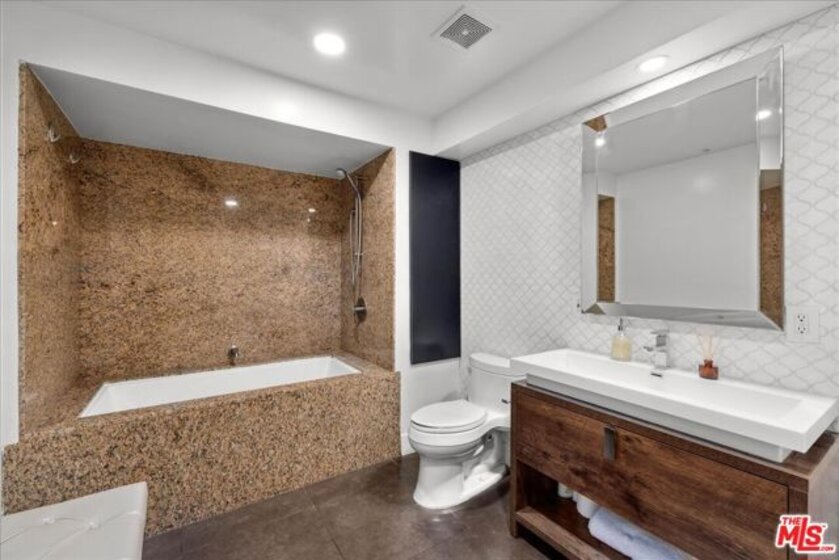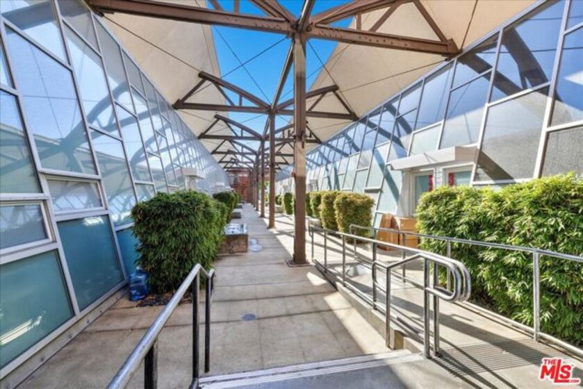 Welcome to Gallery Lofts, a live work community located in the heart of Arts District. This private oversized loft creates the perfect creative sanctuary for artists, musicians, and other like minded individuals. The expansive living area features soaring 16 foot ceilings, polished concrete flooring, an exposed brick wall, and 200 sf private patio that is not included in the total interior square footage. A rare amenity that offers so many possibilities. Also on the first floor is a spa-like full bath and gourmet kitchen with granite countertops, stainless steel appliances, and plenty of built in storage space. Walk up the floating staircase to the primary with bright en-suite bath, and an an option for extra privacy provided by the sliding barn doors. Before entering the primary there is ample space on the mezzanine for a home office or exercise area overlooking your spacious lower level. Experience all of Arts District's bustling galleries, restaurants, and nightlife. Community features gated security entrances, outdoor atrium, fountains, and a secure mailroom. One assigned parking space with convenient and direct access to the private patio entrance. HOA dues include high speed internet, water, gas, trash, sewer, and community security system.